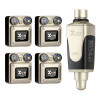 Conjunto inalámbrico para monitorización in-ear compuesto por un transmisor y cuatro receptores, diseñado para ofrecer una solución de monitorización personal sencilla, fiable y discreta. Ligero y compacto, se integra fácilmente en una configuración de escenario, ensayo o estudio.