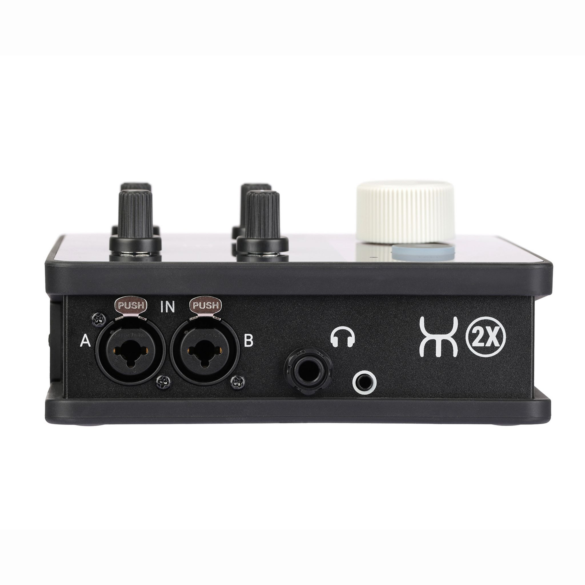 Ofrece preamplificadores de micrófono con ganancia real y ajuste preciso en pasos de 1 dB, alimentación phantom de 48 V, fase y filtro pasa-altos en todas las entradas, así como recuperación automática de los ajustes. La pantalla LCD y la conexión USB-C también facilitan el uso diario.