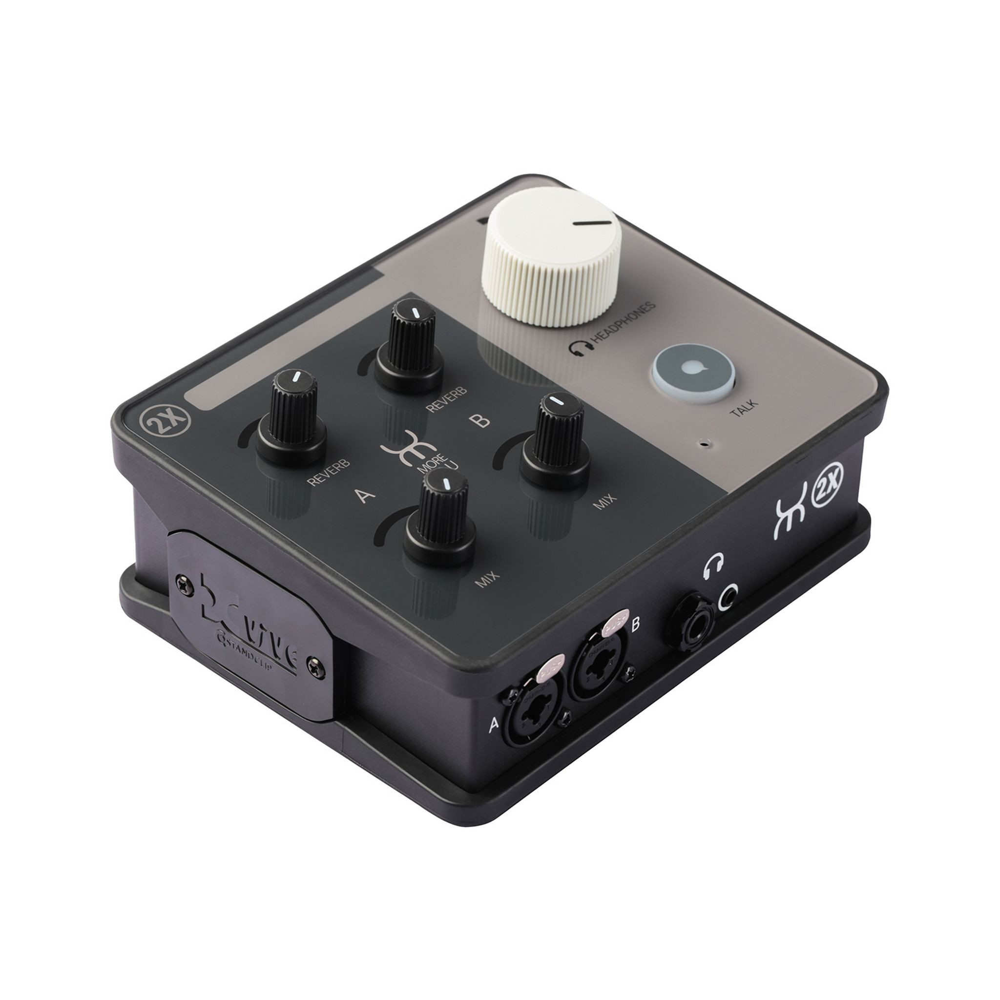 • Preamplificadores de micrófono con ganancia real y 60 dB de ganancia en pasos de 1 dB para un ajuste y un recuerdo precisos, alimentación phantom de 48 V, fase y filtro pasa-altos disponibles en todas las entradas, cada usuario controla por sí mismo el nivel y la reverberación de sus dos entradas.