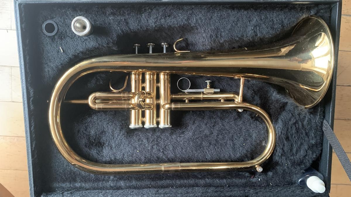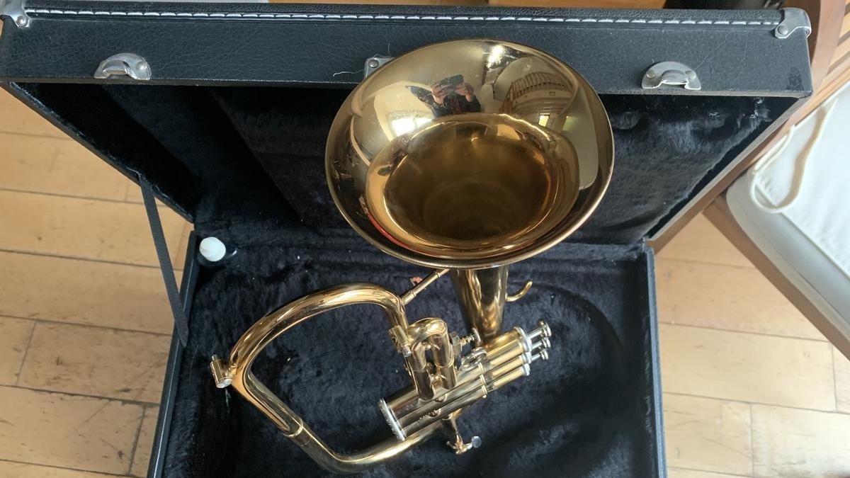 Esta corneta Jupiter es un modelo de estudio confiable, ideal para comenzar o progresar en un entorno asociativo, escolar o de conjunto. En buen estado general, presenta una pequeña abolladura sin consecuencias en el cuerpo principal. Los pistones y deslizadores funcionan perfectamente. El instrumento se vende con una boquilla y su estuche rígido original.