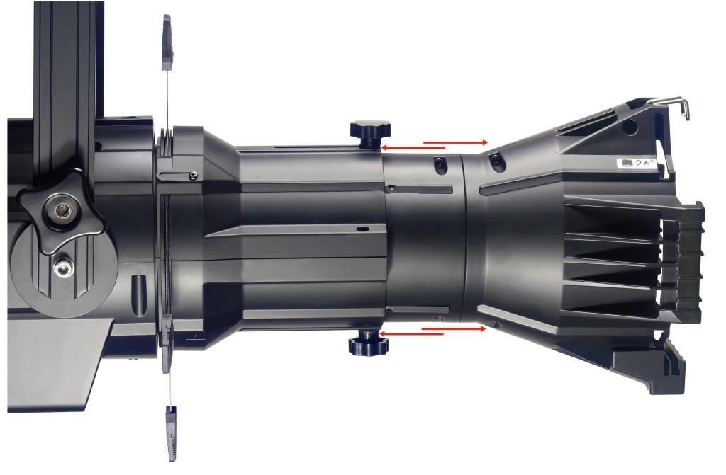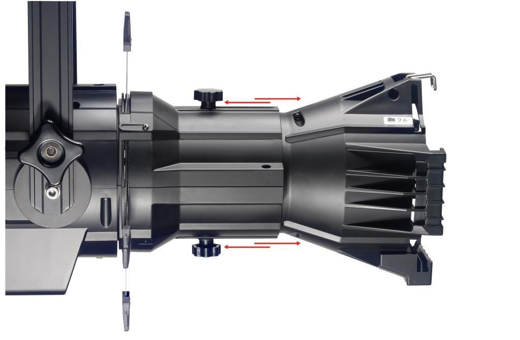 - Características especiales: Ranura para iris y gobo de tamaño A y B, 4 cuchillas manuales