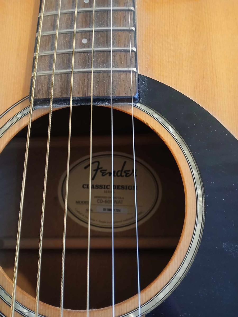 Fender CD60s. Tapa maciza. Sin funda. Pequeño golpe de barniz en la parte inferior de la espalda. No se realizan envíos.