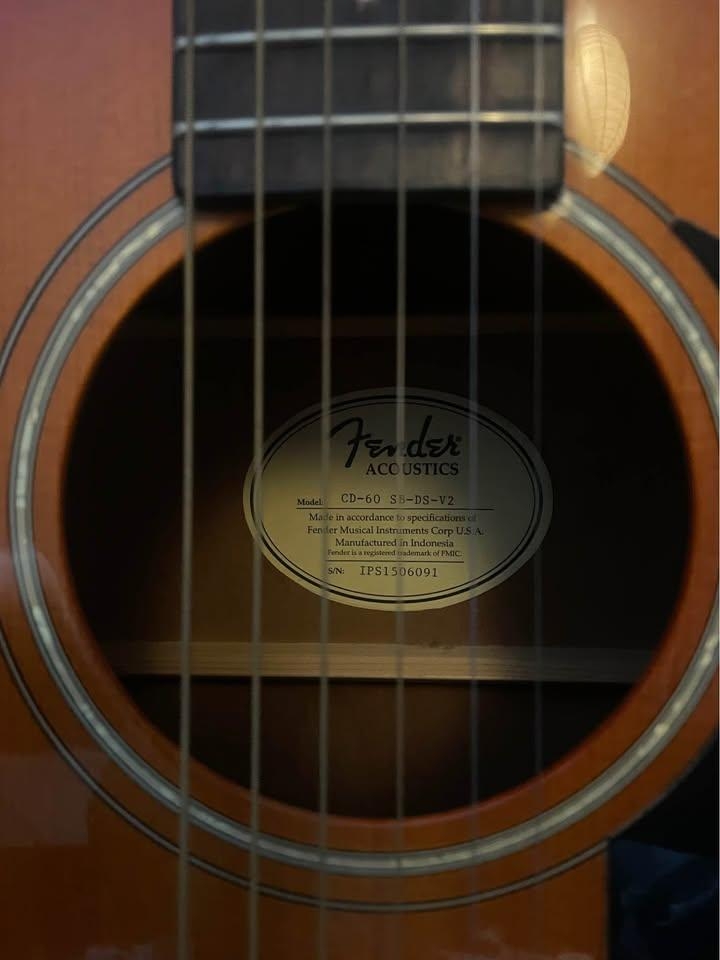 Vendo mi guitarra Fender CD-60 V2 Guitarra acústica, porque tengo dos y ya no la uso demasiado. Es una guitarra acústica folk que tiene un valor nuevo de 130 euros. La estoy vendiendo por 100 euros, negociables dentro de un límite razonable.