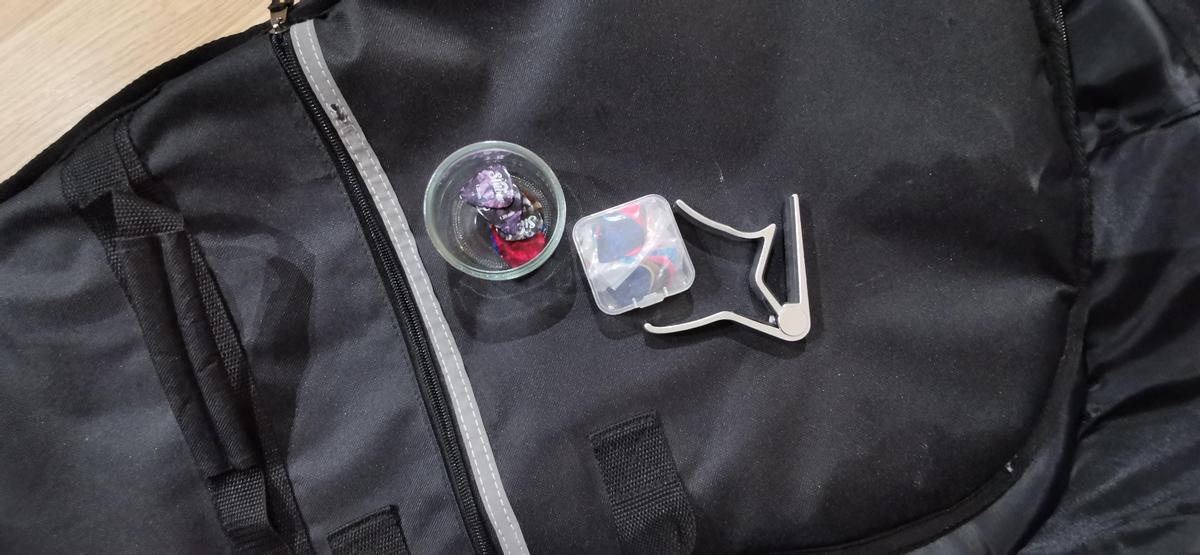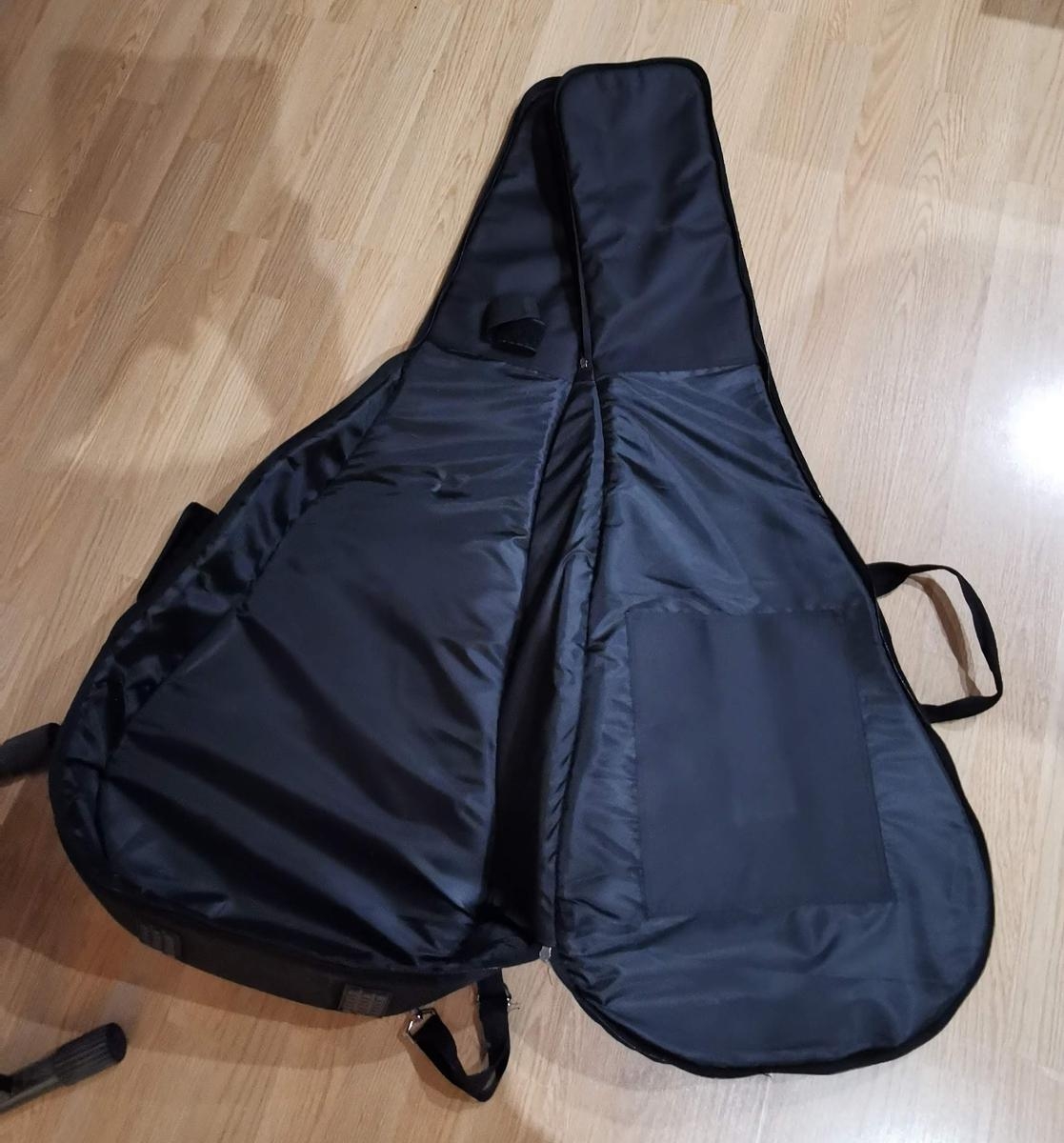 Acompañada de su funda, un soporte, un set de púas, un cejillo y un set de cuerdas.