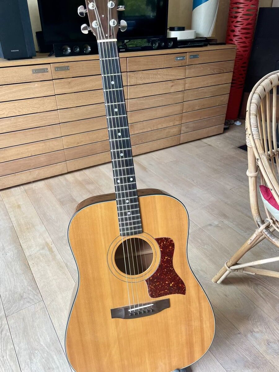 La Taylor 610 de principios de 1979 es una guitarra acústica de alta gama fabricada en Estados Unidos. Se distingue por su cuidada construcción, con una tapa de abeto macizo y un cuerpo de arce, que ofrecen un sonido claro, potente y equilibrado. Este modelo vintage, de los primeros años de producción de Taylor, es especialmente buscado por su calidad de fabricación y su carácter sonoro único.