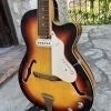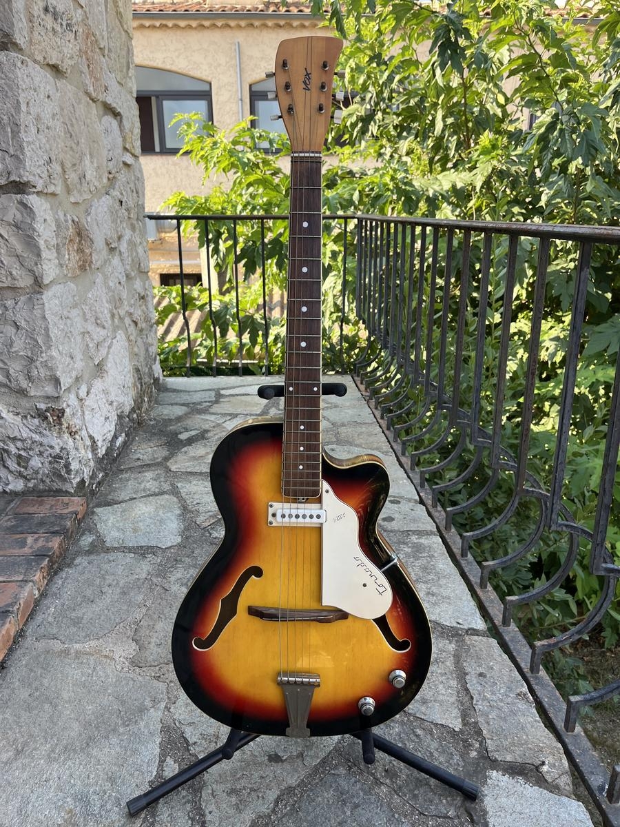 Esta guitarra acústica de 6 cuerdas captura la esencia del diseño vintage con su elegante construcción hollow body. Fabricada en Italia en la década de 1960, se distingue por su carácter único, desde el traste cero hasta su estuche original incluido, lo que garantiza no solo una protección óptima, sino también una afinación constante.