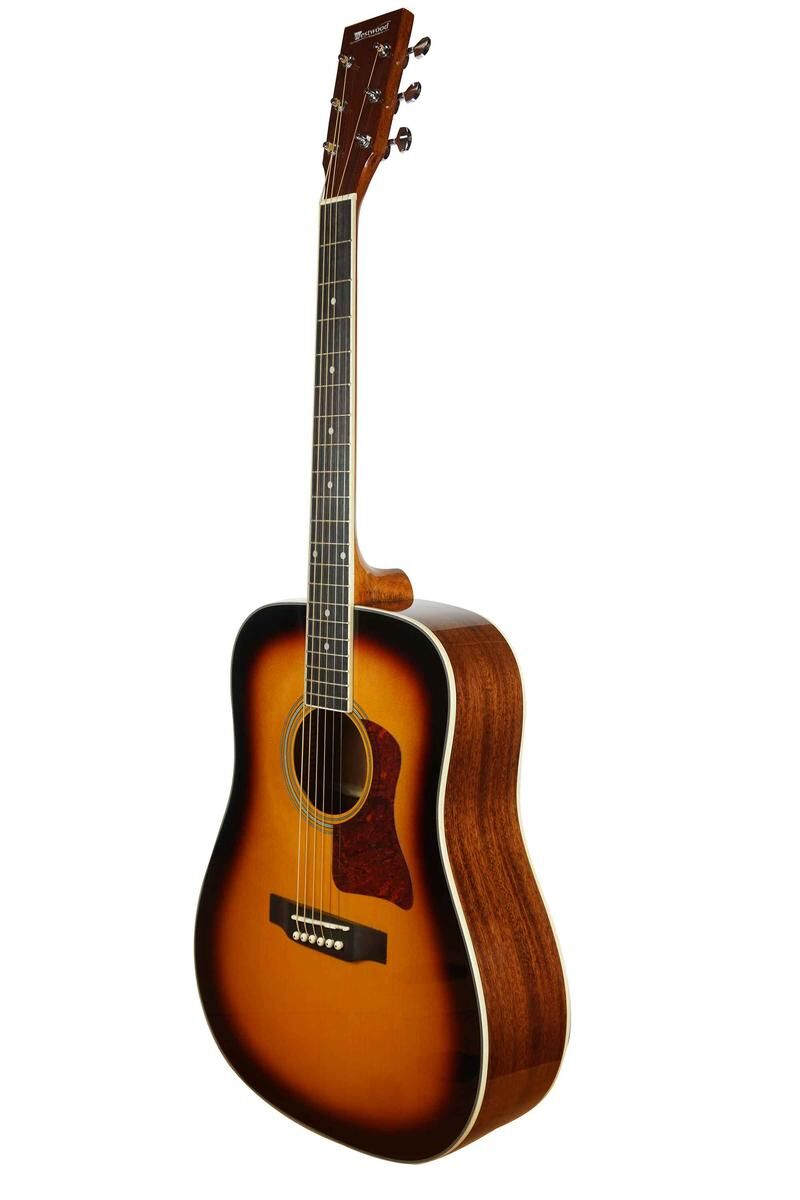 Esta guitarra ofrece una excelente proyección de sonido gracias a su cuerpo Dreadnought y su tapa de abeto, al tiempo que se beneficia de materiales de alta calidad, como el diapasón y el puente de palisandro, para una transmisión óptima de las vibraciones. Las clavijas cromadas y el acabado cuidado garantizan una estabilidad y durabilidad mejoradas. Su estética elegante en Sunburst o en acabado brillante o satinado también añade atractivo visual.