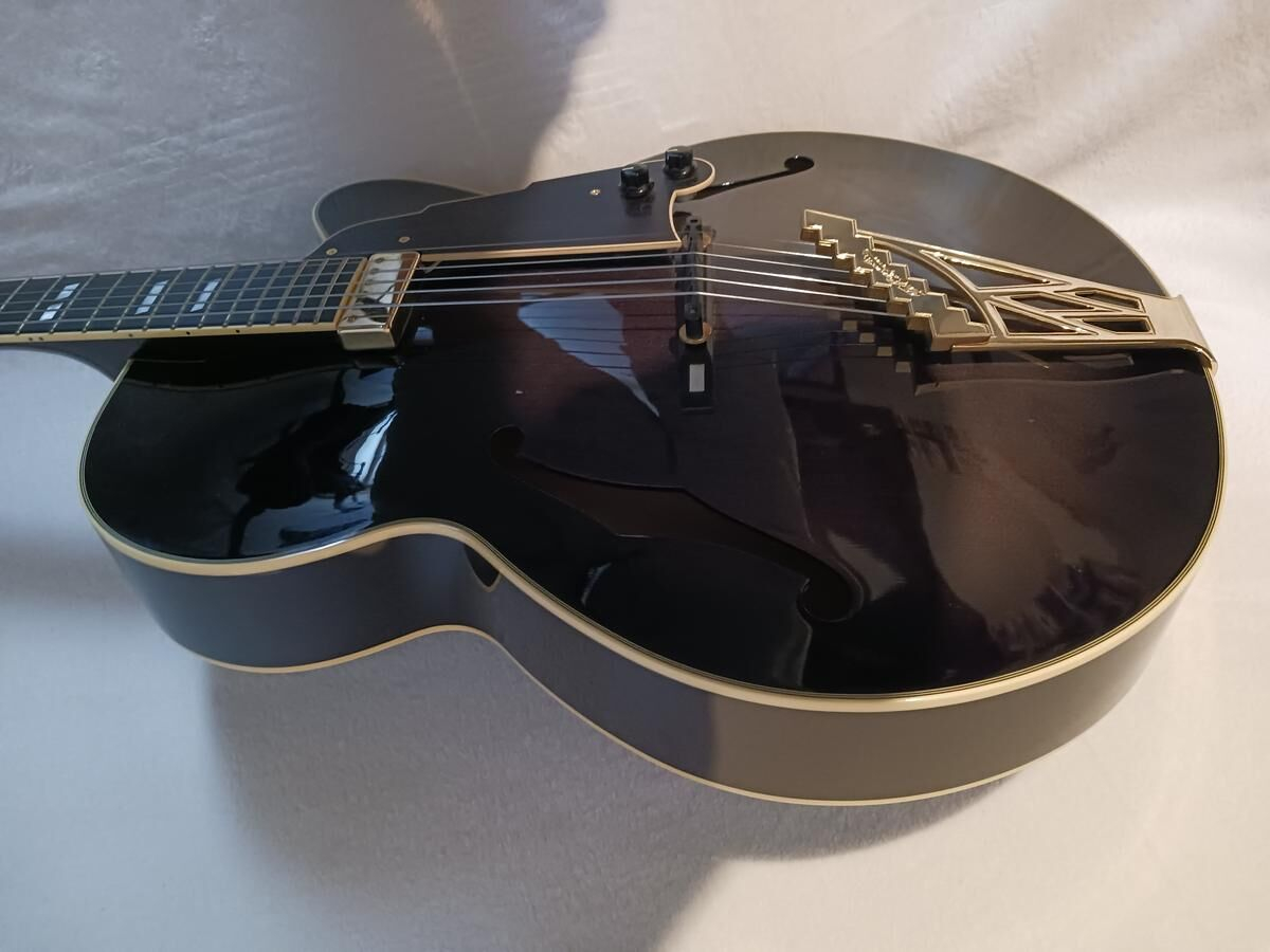 Guitarra D'Angelico NYL-6 Special Vestax Black sunburst, es una guitarra Archtop.