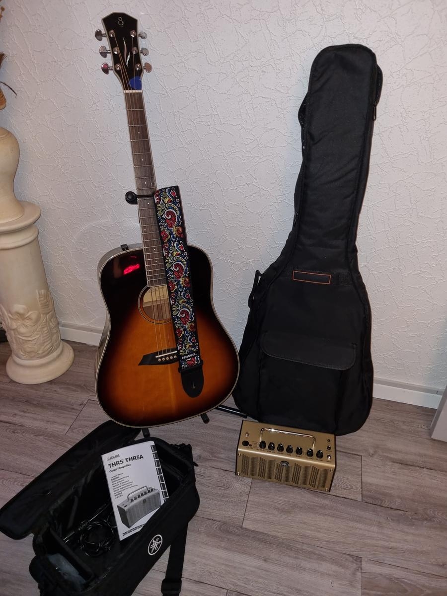 Vendo lote de guitarra acústica Sire Revolution modelo R3 con un valor de 340 euros nueva, amplificador Yamaha THR con un valor de 225 euros, incluye estuche y también estuche de guitarra, correa y trípode con un valor de 400 euros, en muy buen estado.