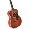 Este modelo cuenta con una fabricación cuidadosa utilizando materiales nobles como el Koa flameado macizo, lo que garantiza un sonido cálido, equilibrado y una excelente proyección. El acabado brillante natural resalta la belleza de la madera, mientras que las clavijas Grover aseguran una estabilidad de afinación óptima. El diseño en forma 000 y la unión en el traste 14 ofrecen una ergonomía apreciada para mayor comodidad de ejecución.