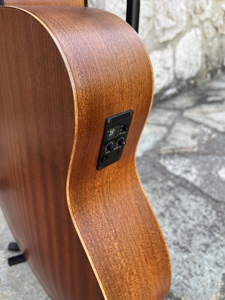 Esta guitarra baja electroacústica combina portabilidad y sonido de alta calidad, ideal para músicos en movimiento. Su cuerpo compacto y su escala corta la hacen perfecta para viajar, pero sigue siendo poderosa en el escenario gracias a su sistema de preamplificación pasiva.