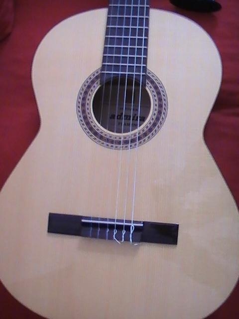 La Admira K34 es una guitarra clásica flamenca de alta calidad, fabricada en España. Se distingue por su tapa de abeto macizo, que ofrece un sonido claro y brillante, ideal para el estilo flamenco. El fondo y los aros son de sicomoro, una madera reconocida por su ligereza y resonancia, lo que contribuye a una proyección sonora óptima. El mástil está hecho de caoba, proporcionando mayor estabilidad y durabilidad, mientras que el diapasón y el puente son de mongoy, una madera densa que favorece una buena transmisión de las vibraciones. Estas características hacen que la Admira K34 sea un instrumento apreciado por los guitarristas de flamenco por su calidad de fabricación y excelente sonido.