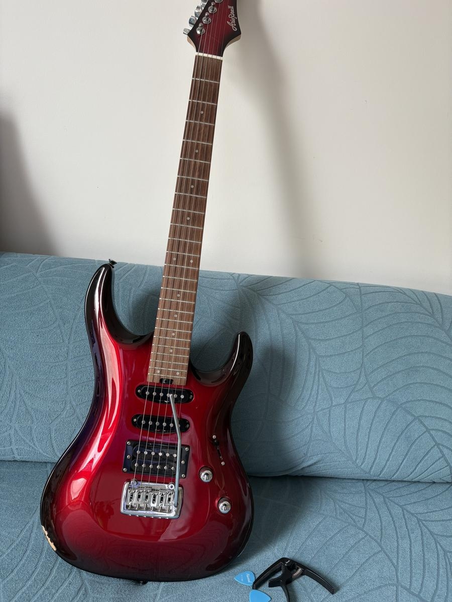 Perfecta para principiantes o para personalizar un setup, esta Aria Pro II es una guitarra con una estética sólida y una buena base electrónica. Es ligera, versátil y poco utilizada, ofreciendo una gran oportunidad a pesar de un defecto visual menor.