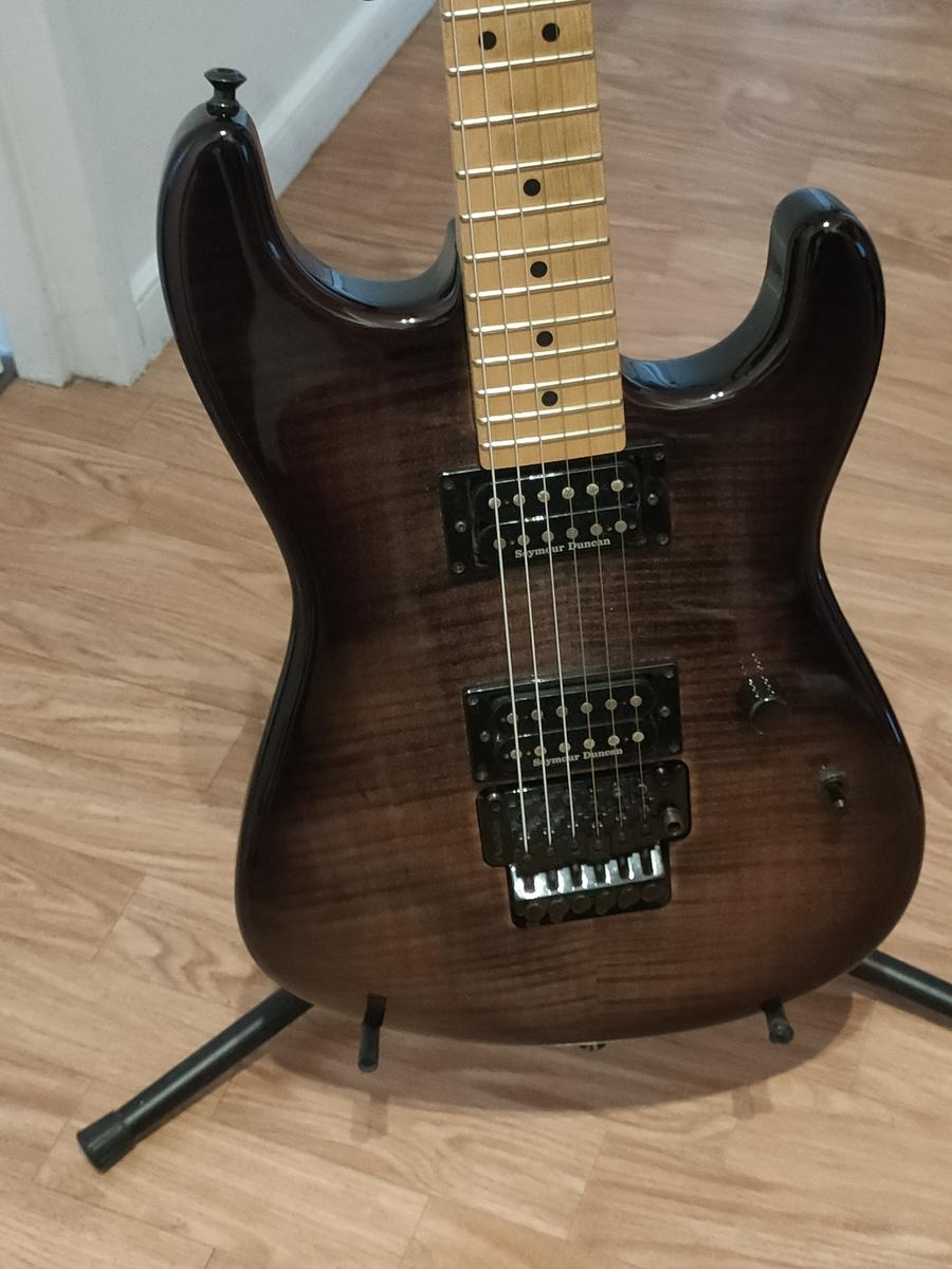 Charvel San Dimas casi nueva, apenas usada, con estuche, 2 pastillas dobles Seymour Duncan, Floyd Rose, bloqueo de cuerdas.