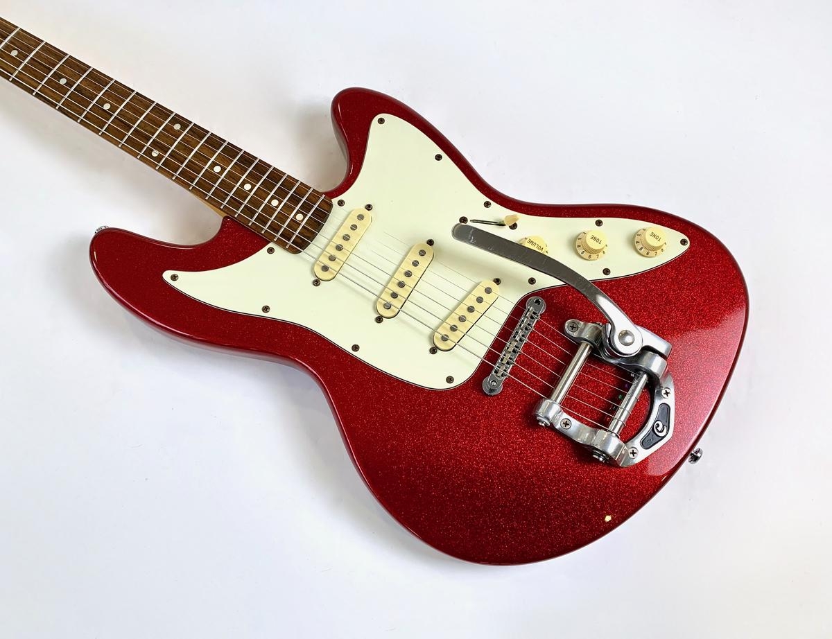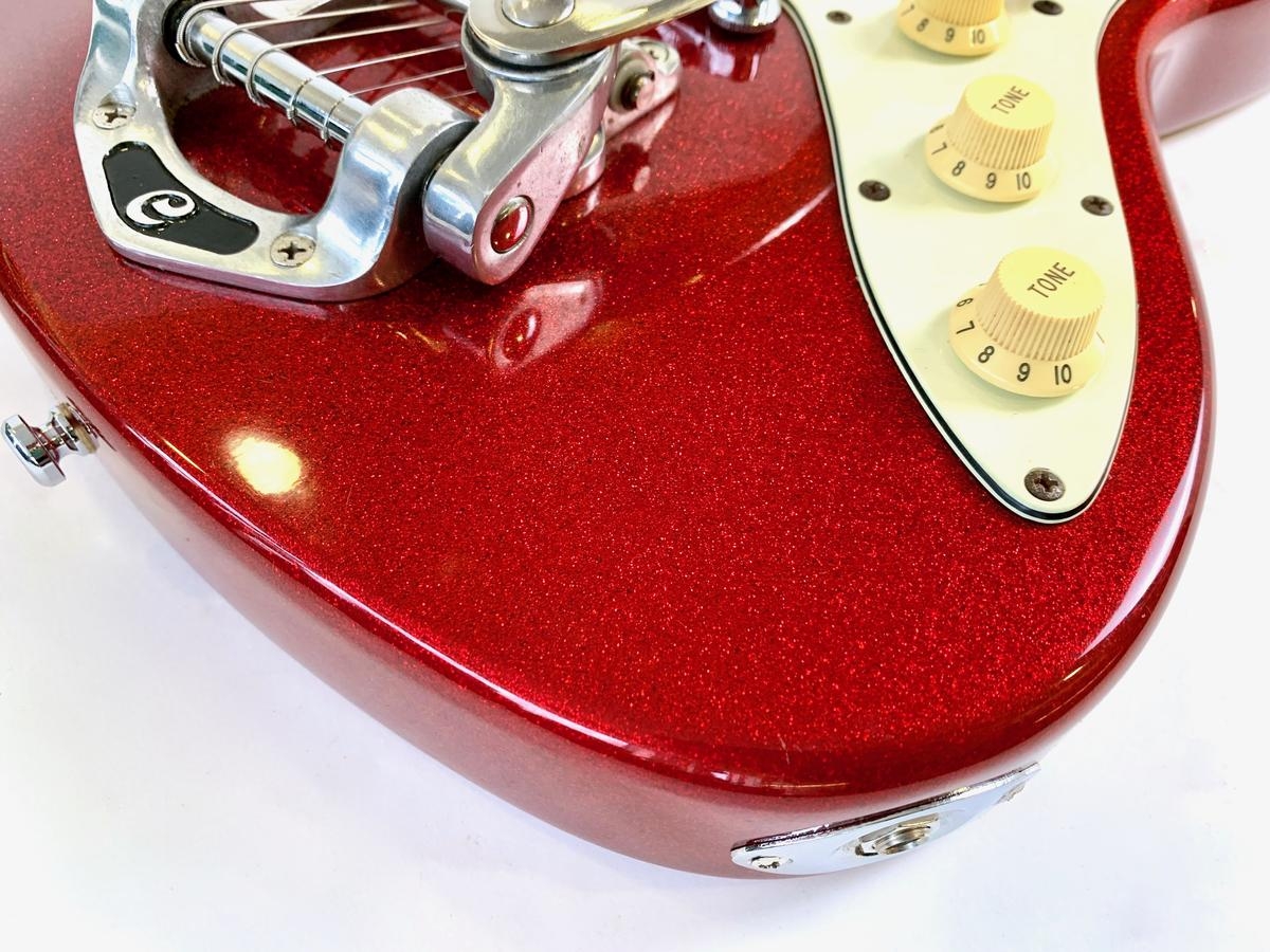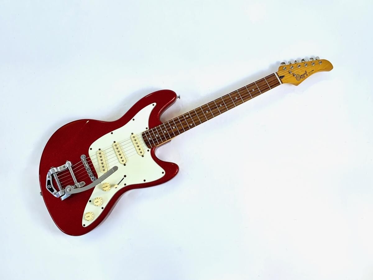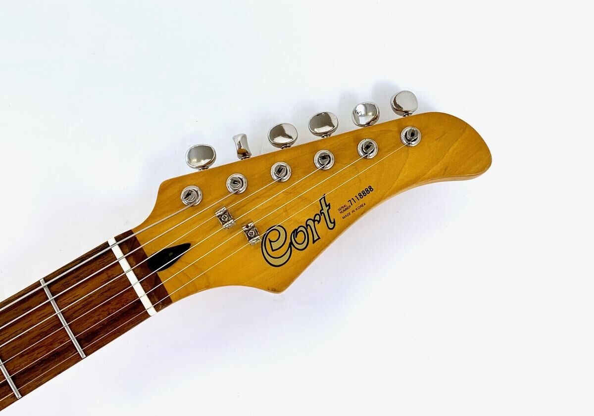 Esta Cort, fabricada en Corea, toma inspiración en su forma de las Fender Jaguar o Jazzmaster y en su configuración de micrófonos de la Stratocaster. Aquí, dichos micrófonos han sido reemplazados por los GuitarFetish.