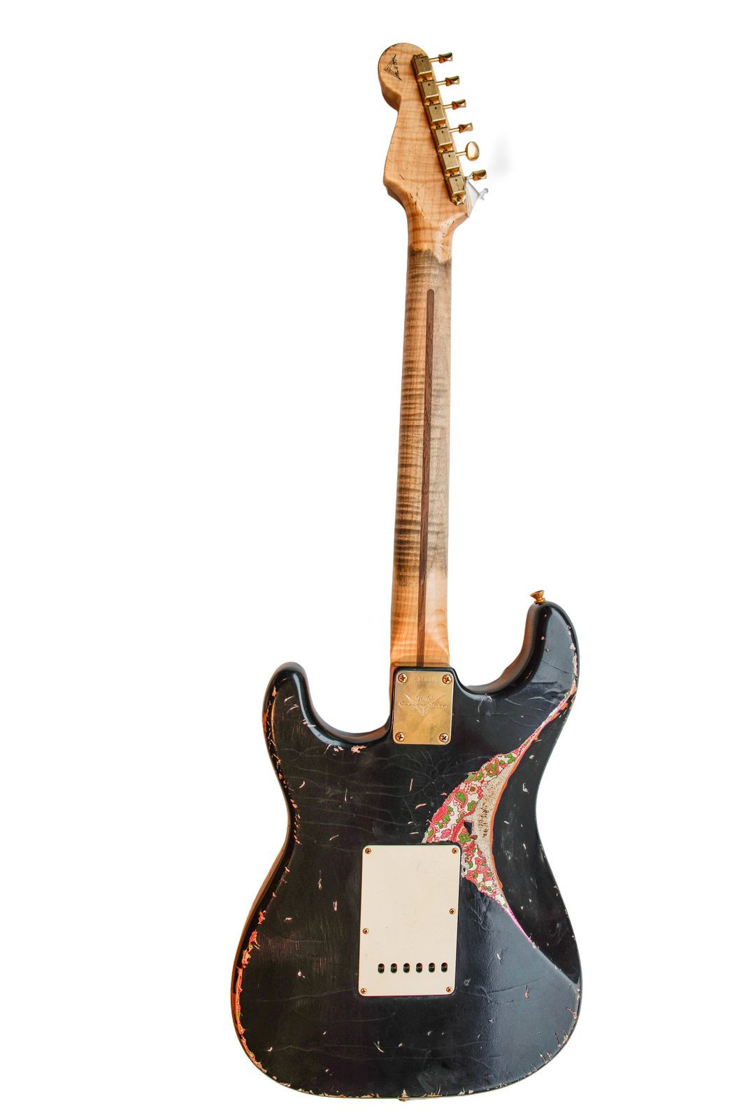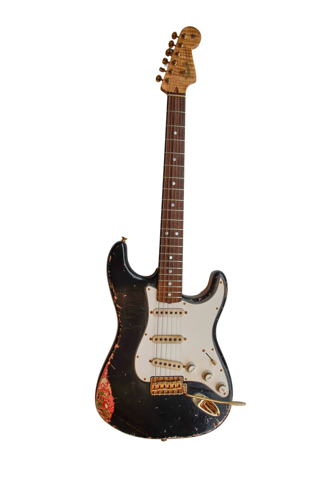 • Master Builder: Austin MacNutt • Cuerpo: Aliso ligero • Color: Negro sobre pink paisley • Acabado: Nitro • Envejecimiento: Relic • Mastil: Arce flameado 4A • Forma de mástil: Oval C estilo años 60 • Varilla ajustable: Bi-Flex • Diapasón: Palisandro oscuro • Radio: 9.5" • Trastes: Medium Jumbo • Cejuela: Hueso • Pastilla de mástil: Strat Fat 60's hecha a mano • Pastilla del medio: Strat Fat 60's hecha a mano • Pastilla de puente: Strat Fat 60's hecha a mano • Circuito Tone-Saver Treble Bleed