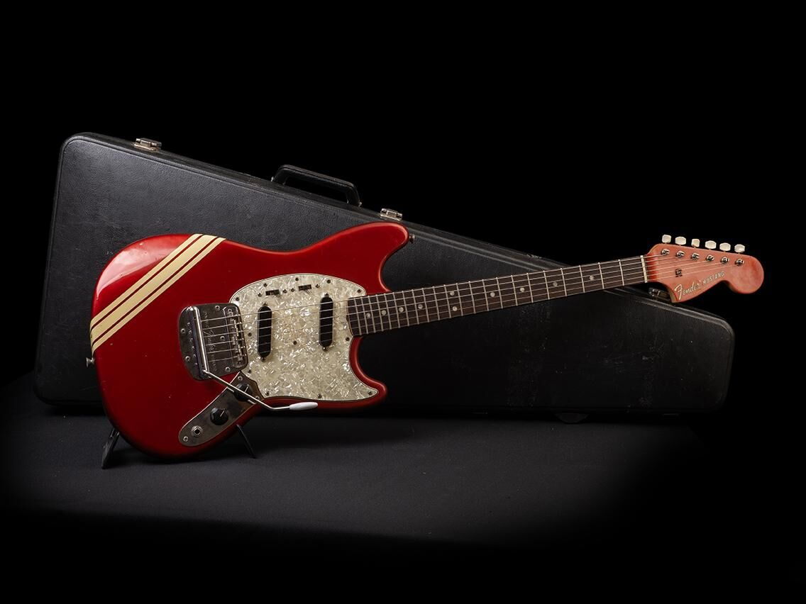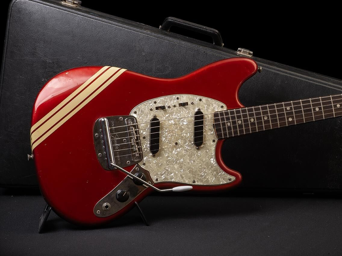 La Fender Mustang Competition 1970 - Candy Apple Red es una guitarra eléctrica clásica que combina la estética retro con un