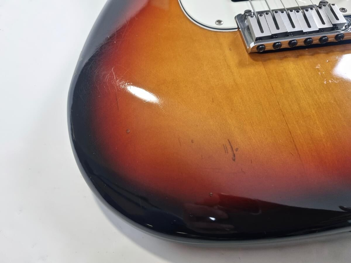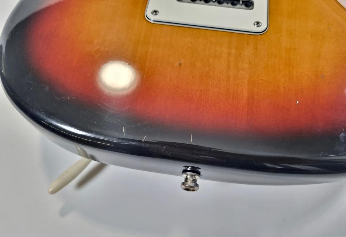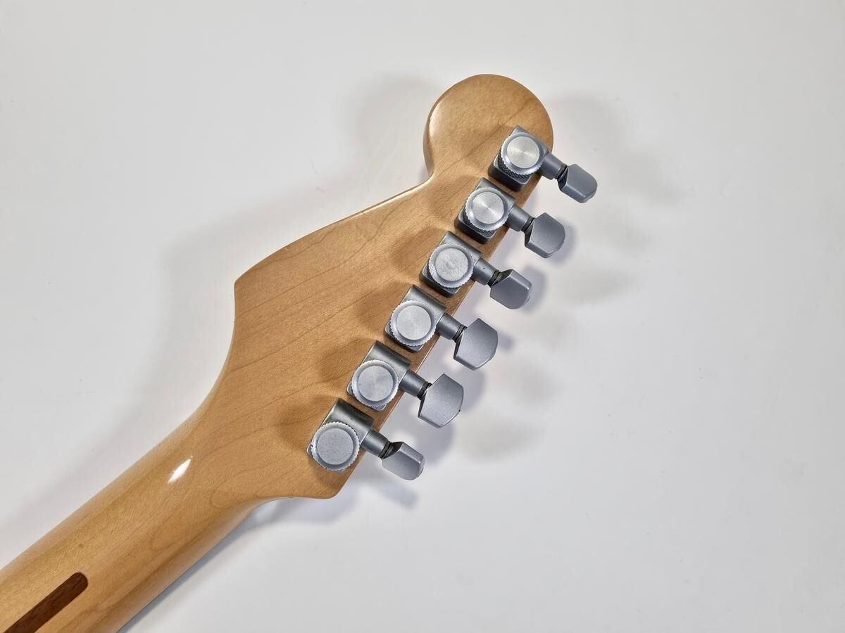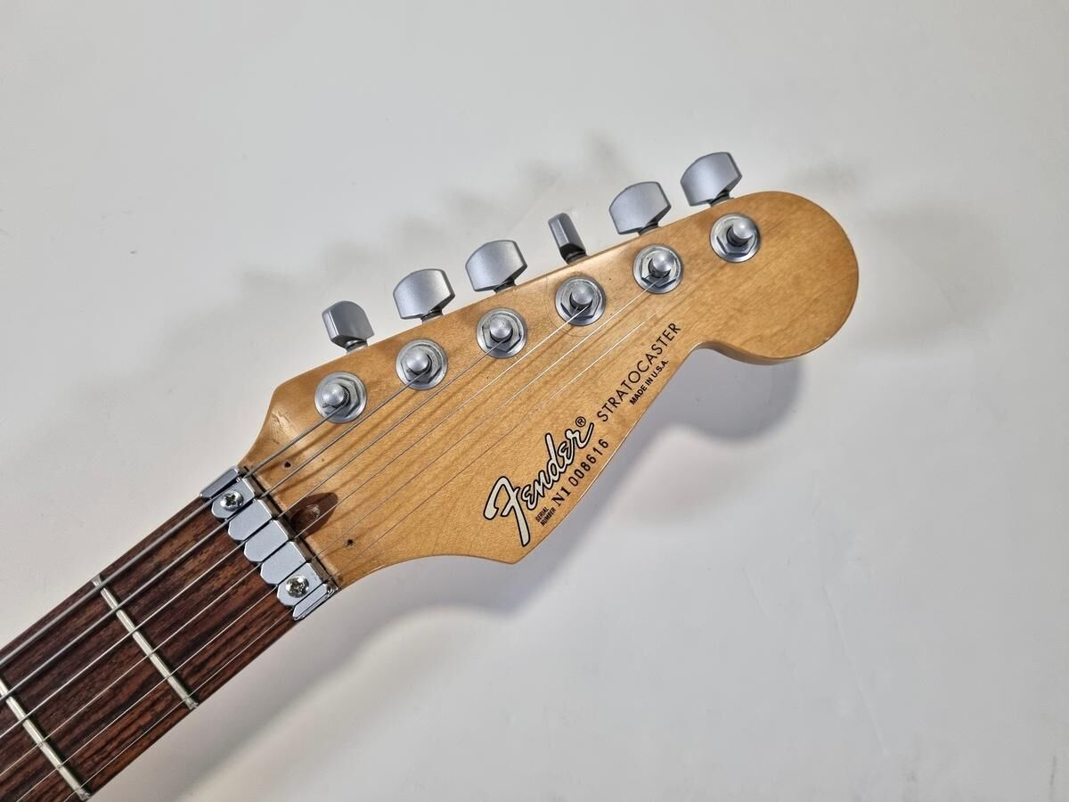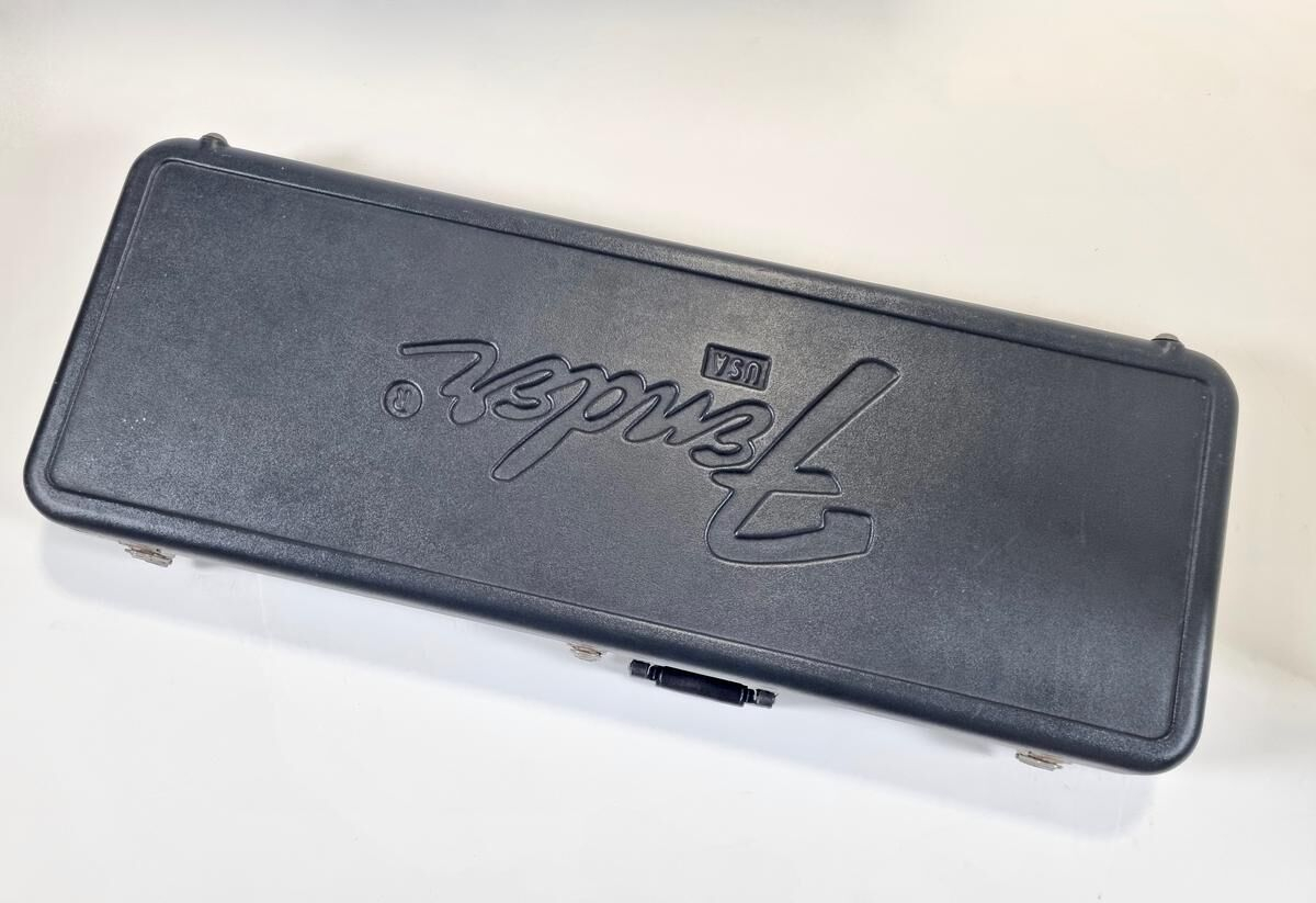 La Strat Plus es una versión más moderna de la Stratocaster American Standard, también es el modelo que precede a la American Deluxe. El cuerpo está hecho de aliso, el mástil de arce con diapasón de palisandro de radio de 9.5 pulgadas, la construcción es clásica. Las pastillas Lace Sensor Gold han sido reemplazadas por excelentes Lindy Fralin en configuración HSS. La humbucker en el puente es un Sunbucker, mientras que las dos single son Blues Special. Entre las especificaciones modernas, se incluyen clavijas de bloqueo y la famosa cejuela Wilkinson. ¡Esta guitarra muestra signos de uso a lo largo de sus 35 años! Se vende con su estuche original.