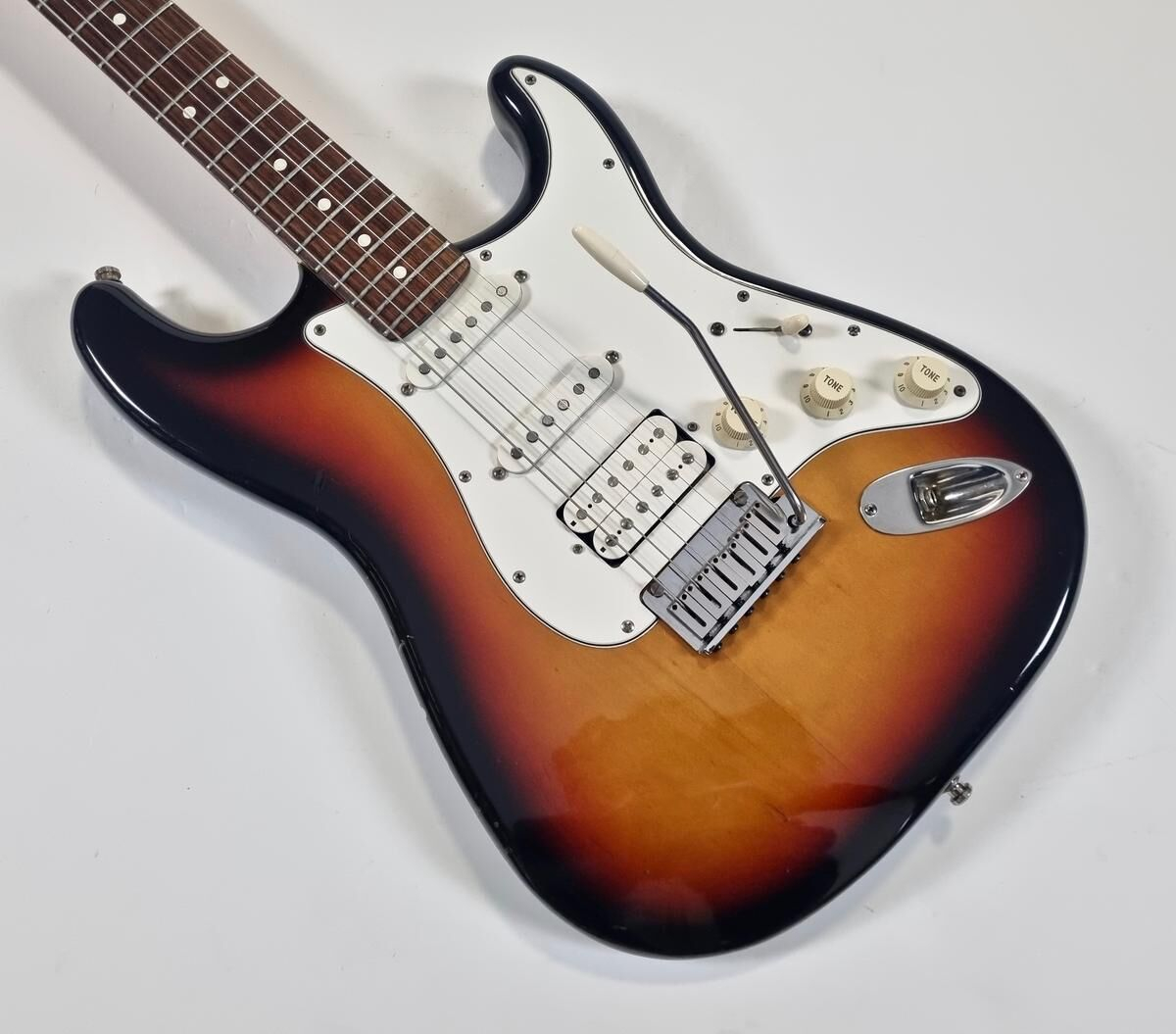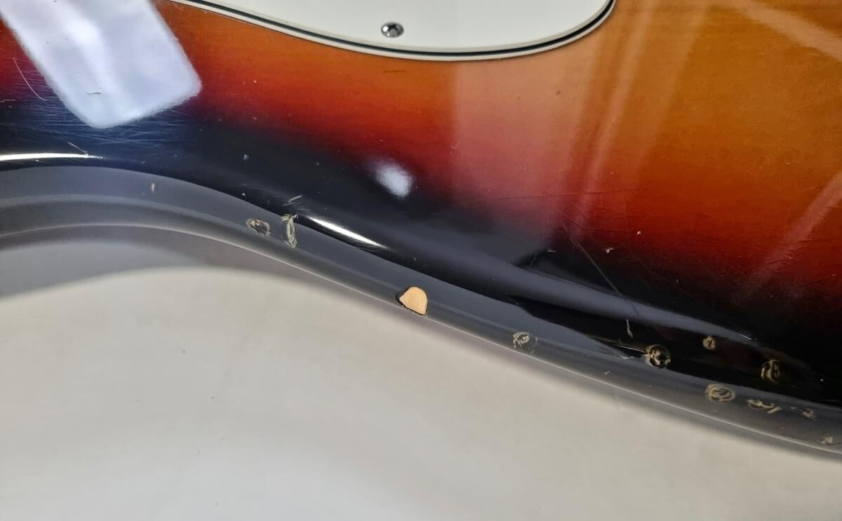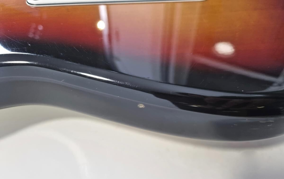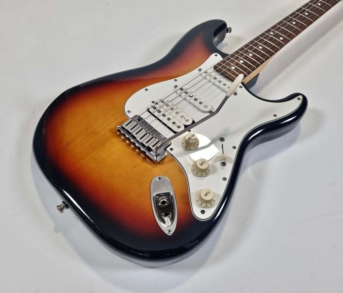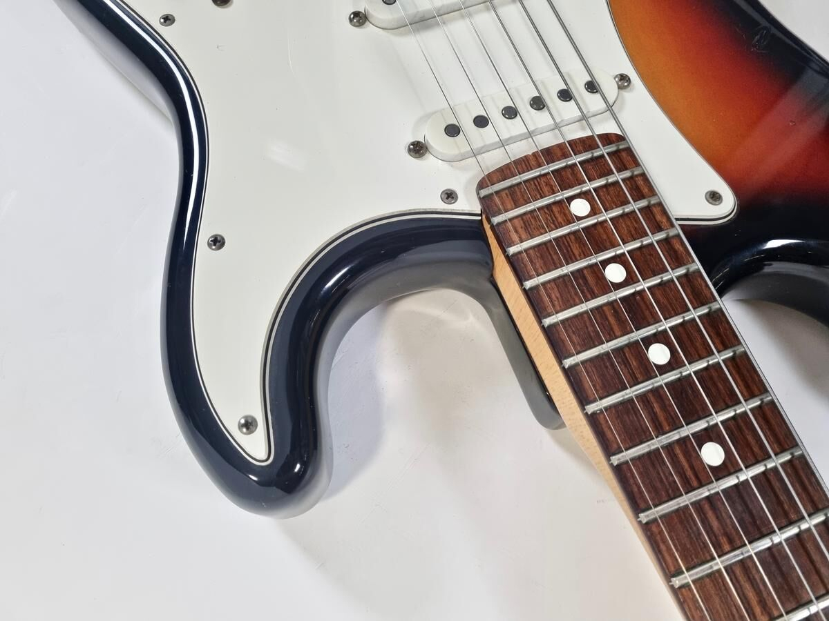 La Strat Plus es una versión más moderna de la Stratocaster American Standard, también es el modelo que precede a la American Deluxe. El cuerpo está hecho de aliso, el mástil de arce con diapasón de palisandro de radio de 9.5 pulgadas, la construcción es clásica. Las pastillas Lace Sensor Gold han sido reemplazadas por excelentes Lindy Fralin en configuración HSS. La humbucker en el puente es un Sunbucker, mientras que las dos single son Blues Special. Entre las especificaciones modernas, se incluyen clavijas de bloqueo y la famosa cejuela Wilkinson. ¡Esta guitarra muestra signos de uso a lo largo de sus 35 años! Se vende con su estuche original.