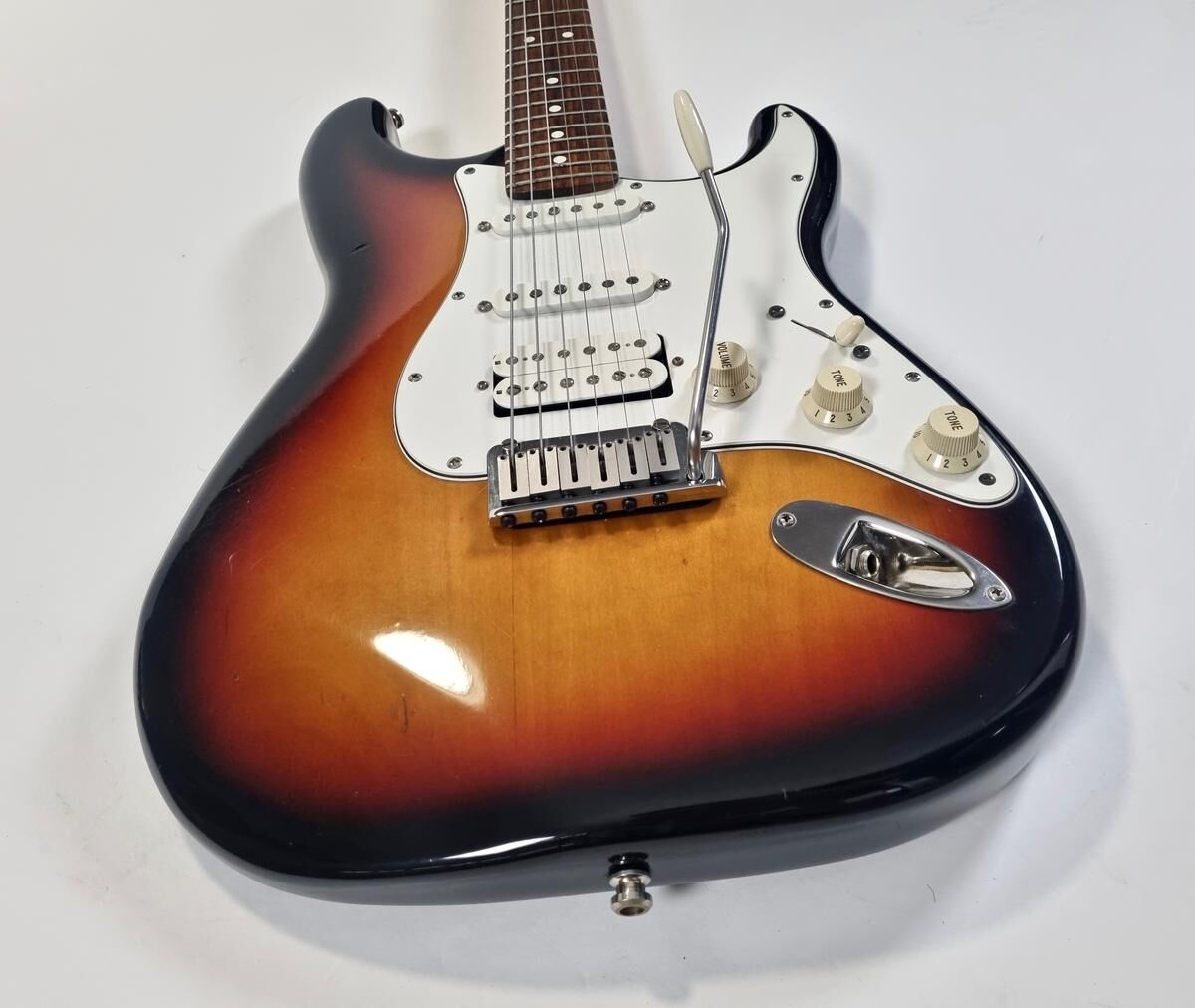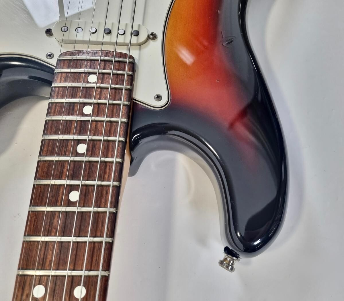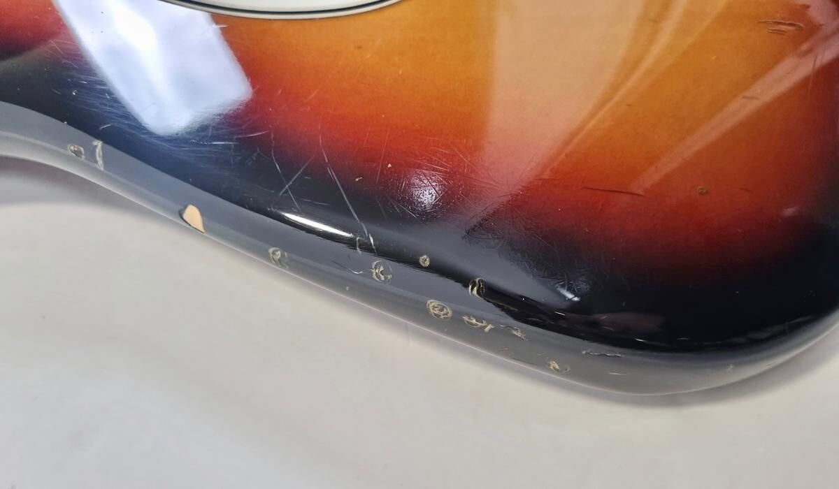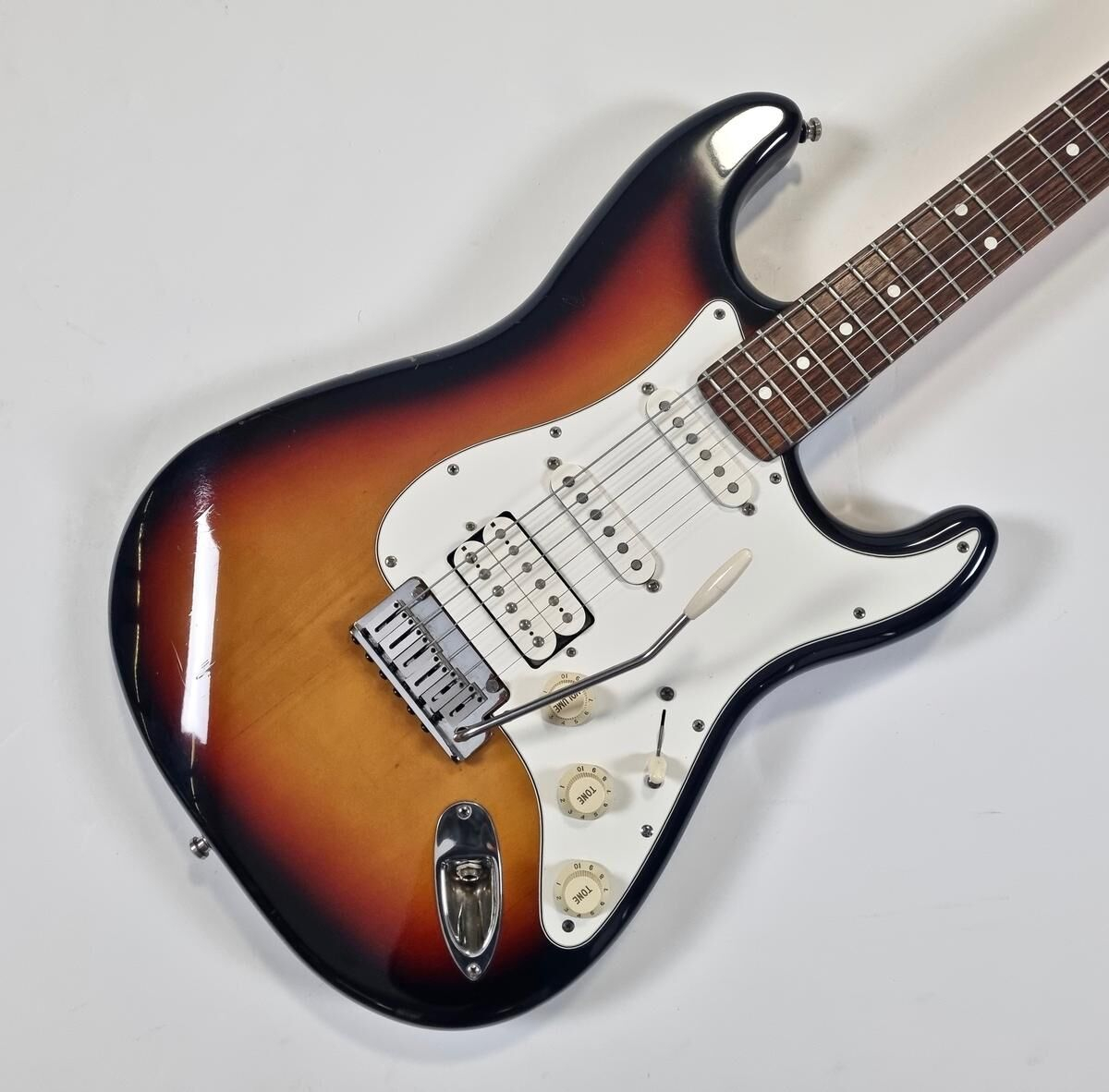 La Strat Plus es una versión más moderna de la Stratocaster American Standard, también es el modelo que precede a la American Deluxe. El cuerpo está hecho de aliso, el mástil de arce con diapasón de palisandro de radio de 9.5 pulgadas, la construcción es clásica. Las pastillas Lace Sensor Gold han sido reemplazadas por excelentes Lindy Fralin en configuración HSS. La humbucker en el puente es un Sunbucker, mientras que las dos single son Blues Special. Entre las especificaciones modernas, se incluyen clavijas de bloqueo y la famosa cejuela Wilkinson. ¡Esta guitarra muestra signos de uso a lo largo de sus 35 años! Se vende con su estuche original.