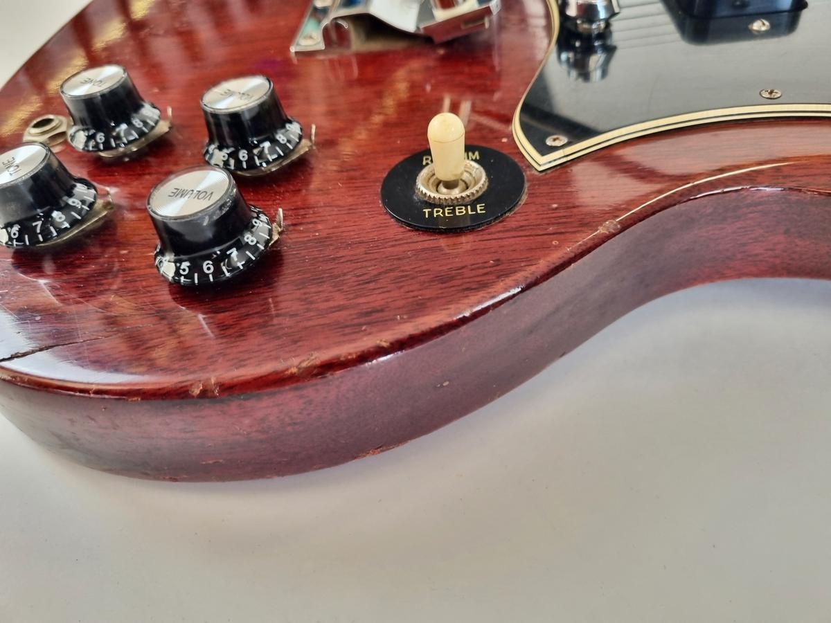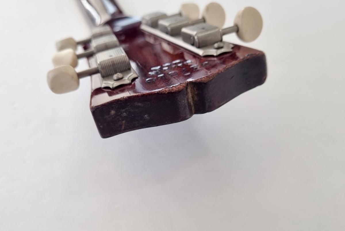 • Instrumento completamente original, a excepción del estuche, clavijas, brazo de vibrato y perillas