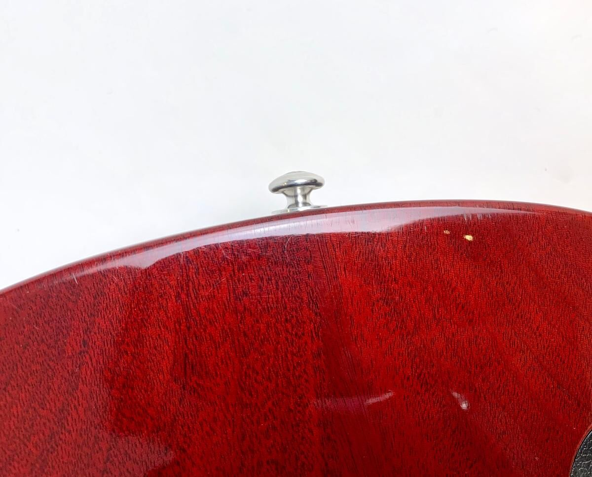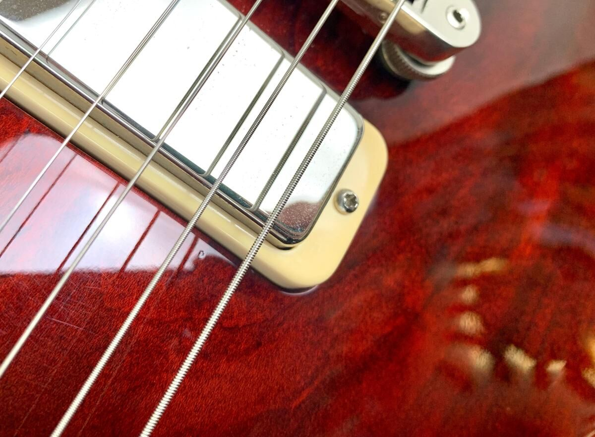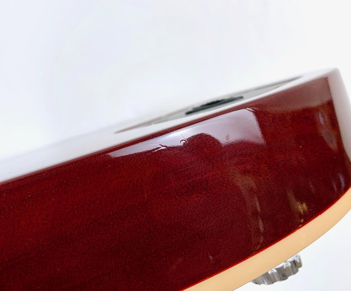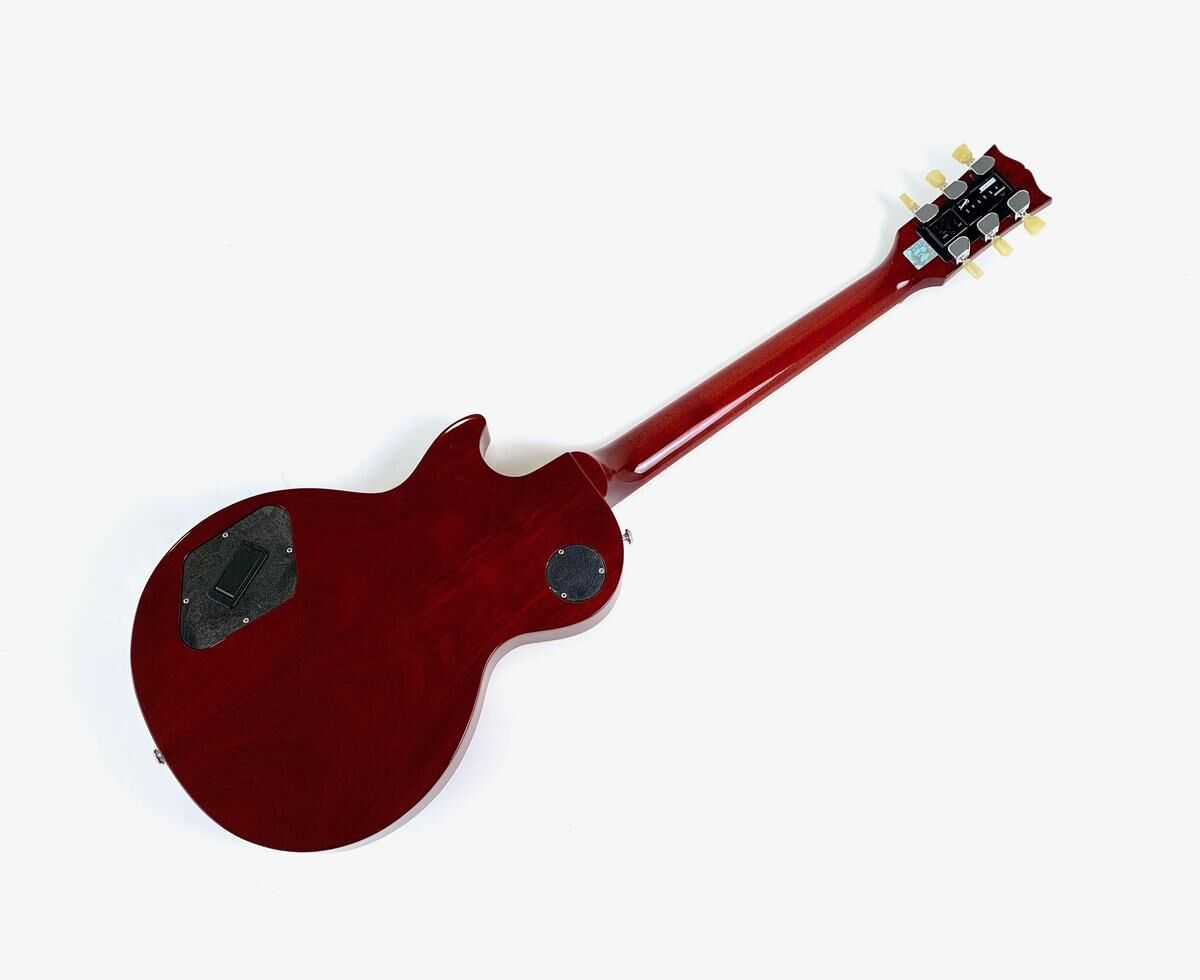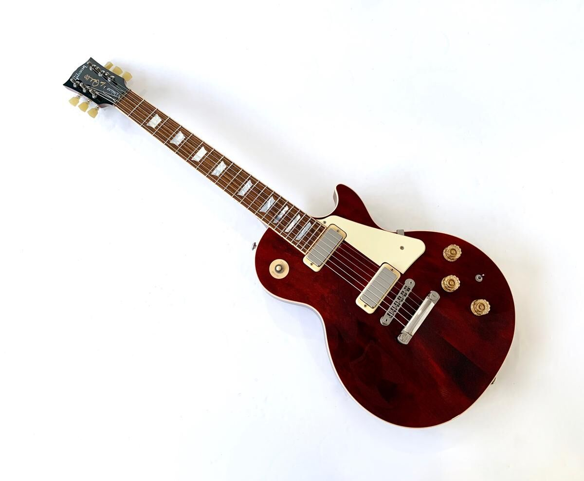 Después de la reubicación de la producción de las Epiphone, Gibson no sabía qué hacer con su stock de mini-humbuckers que dedicaba a su segunda marca. Así fue como se creó en 1969 la Deluxe, básicamente una Standard con un par de mini-humbuckers. En 2015, Gibson actualizó su gama. Esta Deluxe cuenta con afinadores G-Force, una cejuela de latón, un impulso a través de un mini interruptor, etc. Está en excelente estado, la tapa Wine Red es hermosa y se incluye el estuche original con la guitarra.