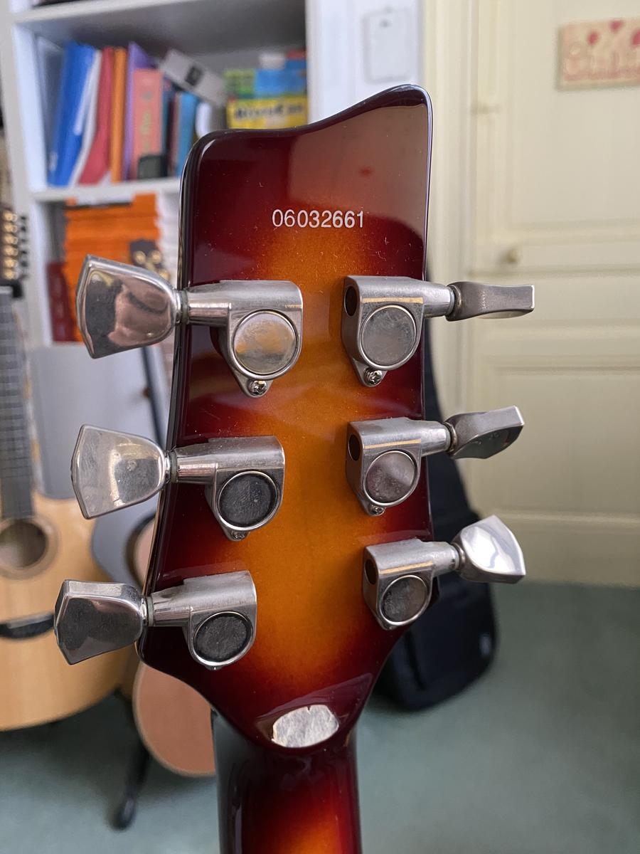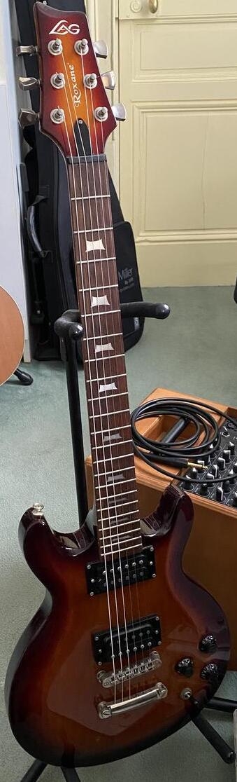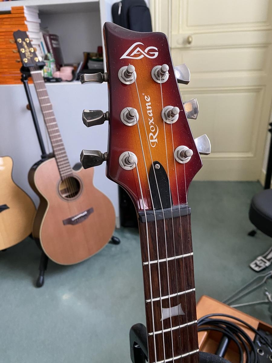 Guitarra Lag Roxane 200 con mástil encolado de arce, diapasón de palisandro, pastillas Lag Alnico de doble bobinado, selector de 3 posiciones con push pull en el volumen, número de serie 06032661.