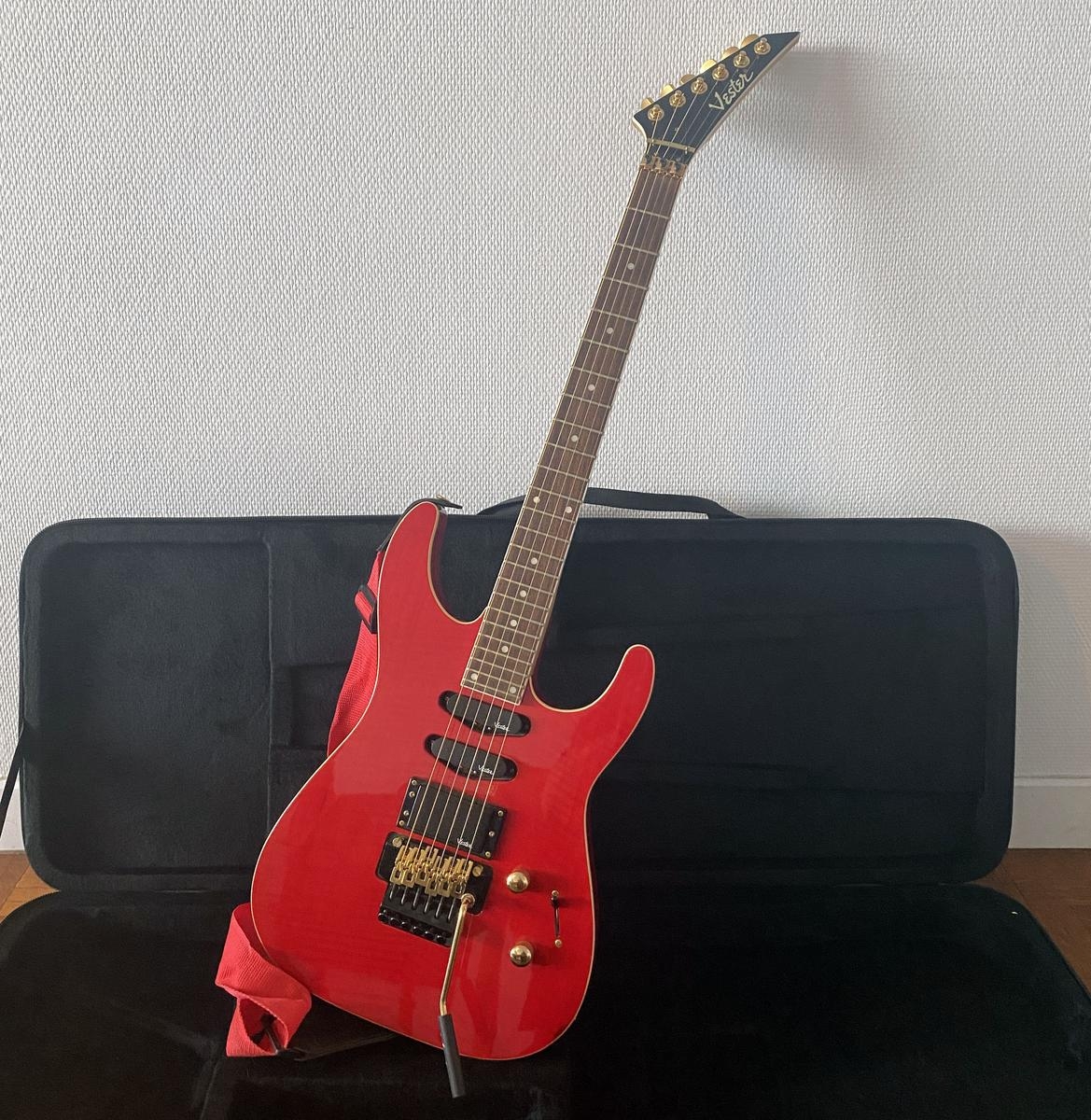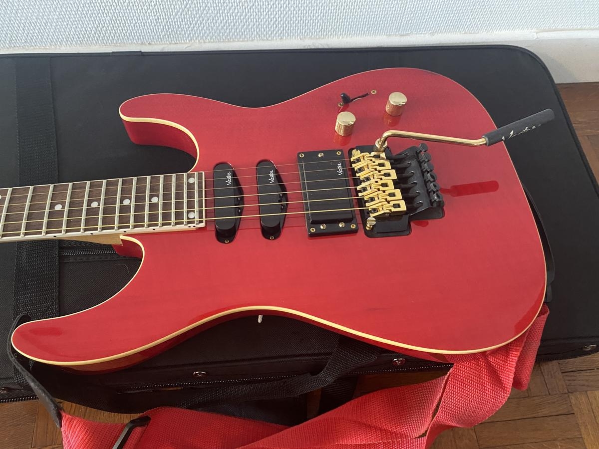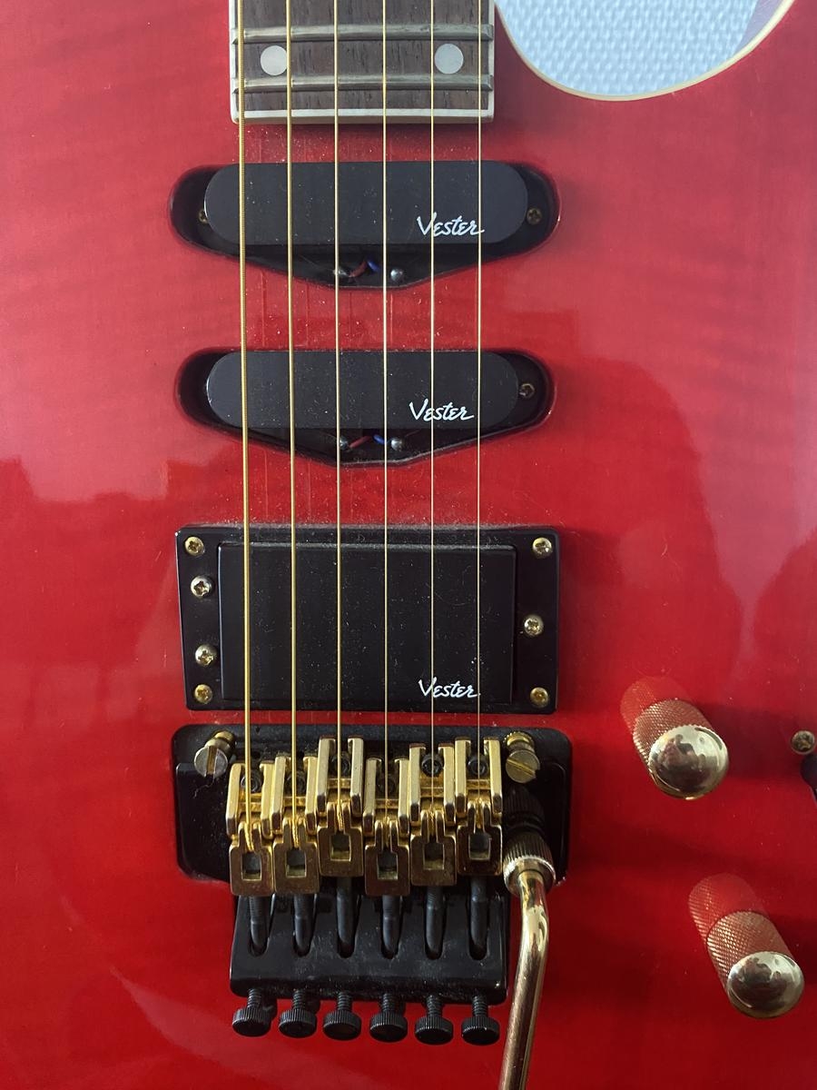 Vester JJR1290 Arce llameante rojo y dorado - Floyd Rose MIK 1994 + Estuche nuevo