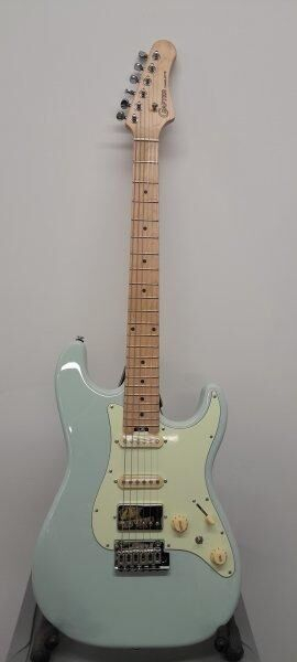 Guitarra eléctrica serie Charlotte, con funda, acabado day blue