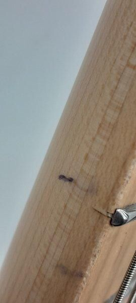 Defectos: marca de rotulador debajo del barniz, imposible de quitar