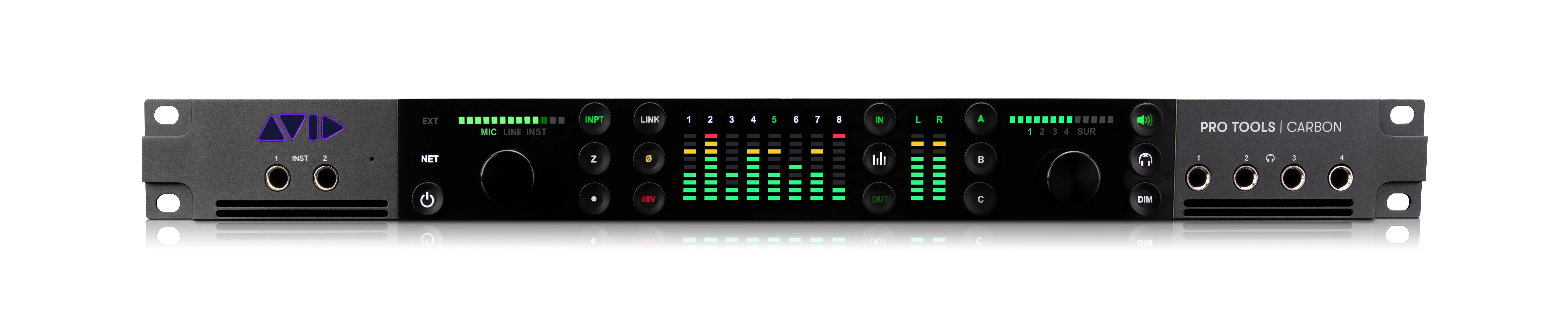 • Pro Tools | Carbon es compatible con hasta dos interfaces Pro Tools | Carbon Pre para un máximo de 24 entradas de micrófono/línea y 24 salidas de línea