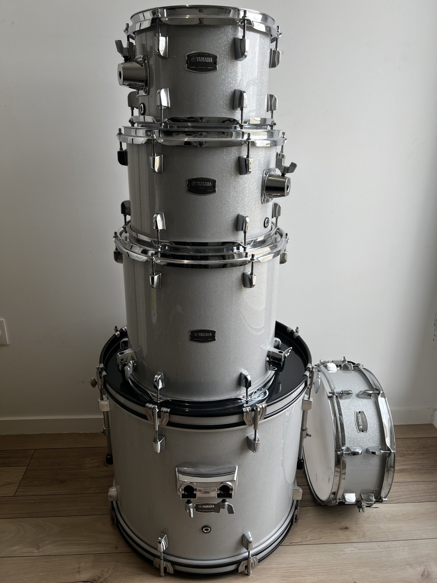 Batería acústica YAMAHA Rydeen en color gris con destellos brillantes + accesorios YAMAHA: Bombo de 20" + Pedal de bombo Tom Bass de 14" en soporte Tom de 12", Tom de 10" en soporte Caja de 14" + Soporte de platillo Hi-Hat de doble base con 2 brazos telescópicos Poco usada desde 2024 550,00 €