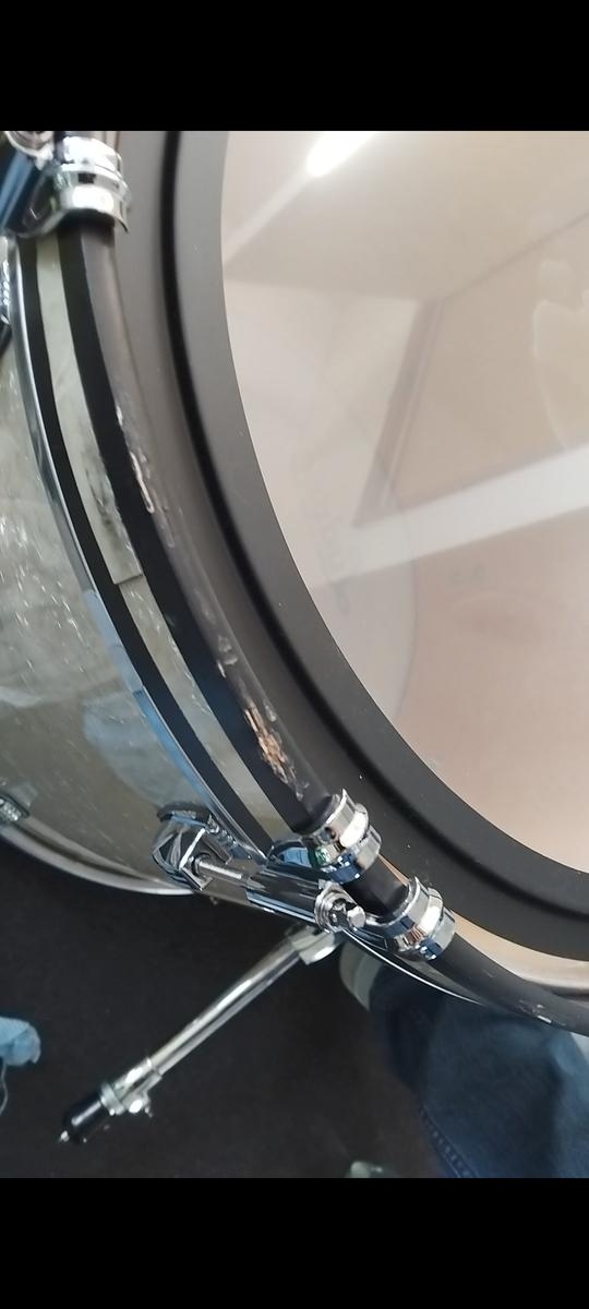 Batería en muy buen estado, salvo algunas marcas en el aro del bombo en el lado de la piel resonante (leves) y también en el lado de la piel de golpeo (más pronunciadas). Por lo demás, todo está en perfecto estado. Actualmente equipada con parches Heats db clear, posibilidad de incluirlos.
