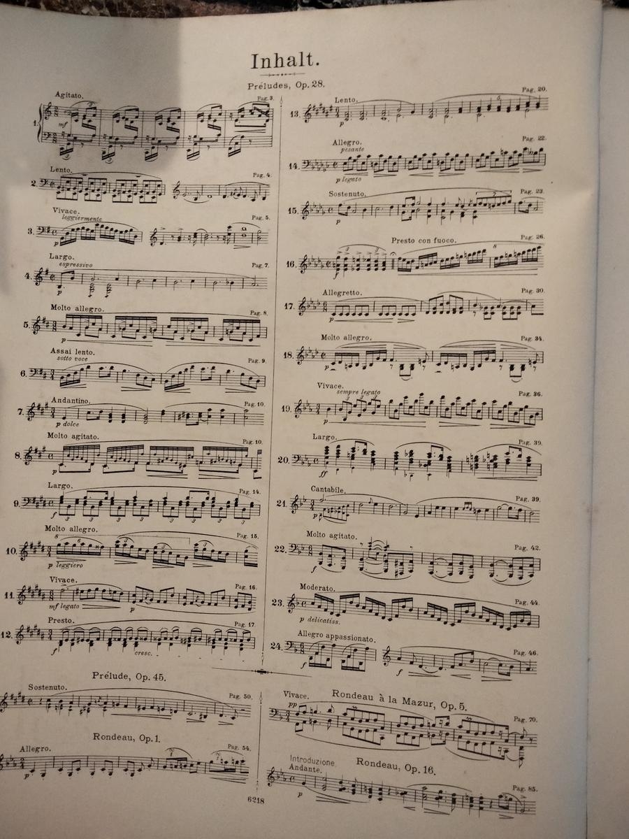 Colección de 24 preludios de Chopin, partituras antiguas aproximadamente antes de la Segunda Guerra Mundial.