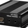 ¡Ahora es fácil enviar una señal de vídeo HDMI de hasta 100 metros a través de un simple cable Ethernet con el Receptor HDBaseT Roland HT-RX01! El HT-RX01 recibe la señal de vídeo HDBaseT de tu matriz de conmutación HT-TX01 o de la serie XS, convirtiendo las señales HDBaseT en HDMI. En , sabemos que esta es una de las formas más simples y confiables de transmitir señales HDMI a larga distancia. Incluso puedes utilizar el Receptor HDBaseT Roland HT-RX01 para transmitir señales de control RS-232C al mismo tiempo que tu vídeo y audio, simplificando aún más tu sistema.