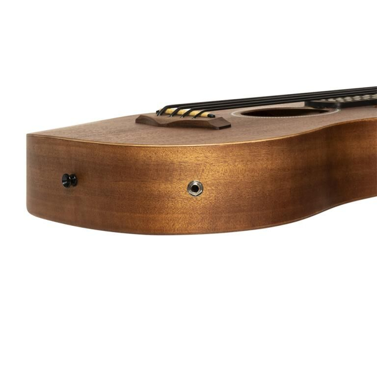 - Electrónica: Micrófono piezoeléctrico integrado con afinador electrónico y control deslizante para volumen y ecualización.