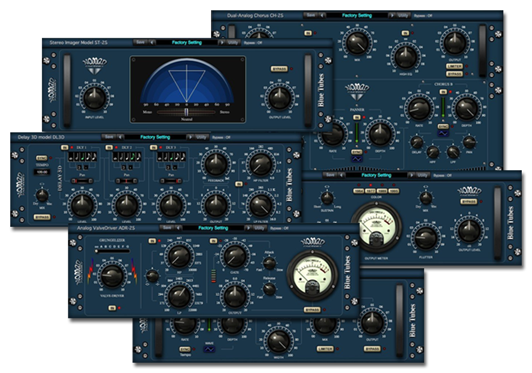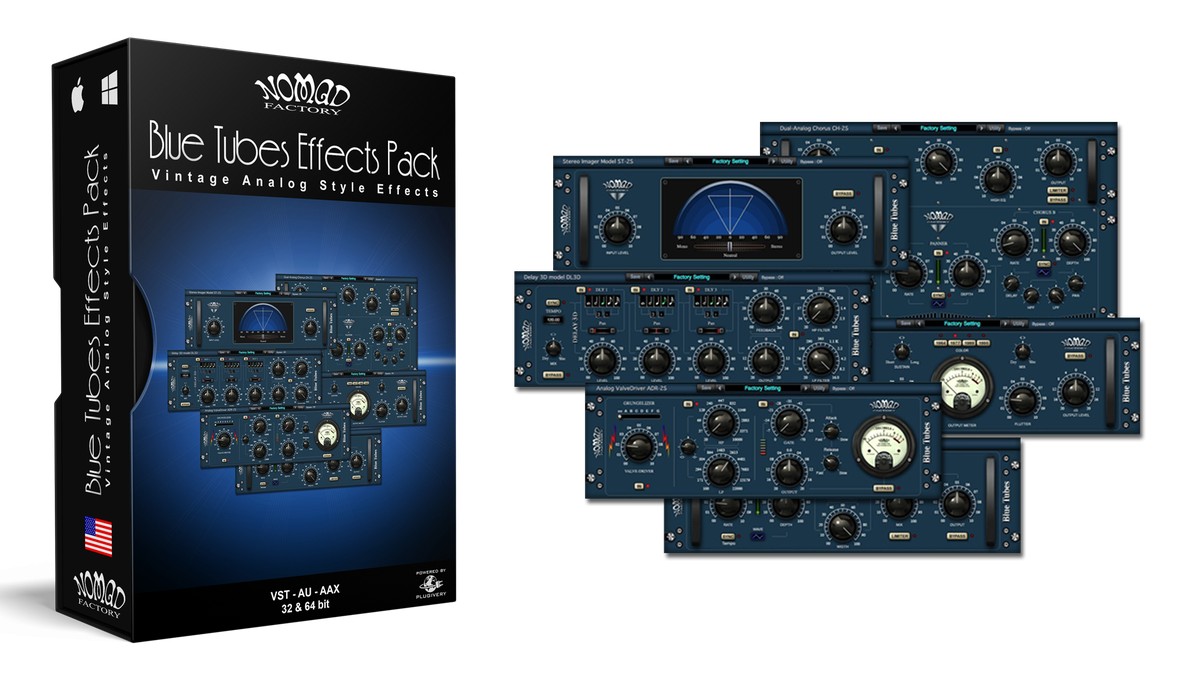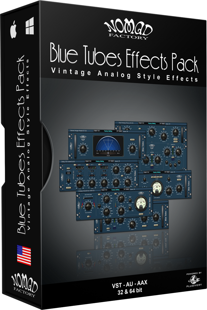 El Paquete de Efectos Azules es una colección de 6 procesadores de plug-ins diseñados para mejorar la calidad de las grabaciones de sonido digital. Este conjunto recrea las cálidas cualidades sonoras de los clásicos equipos analógicos.