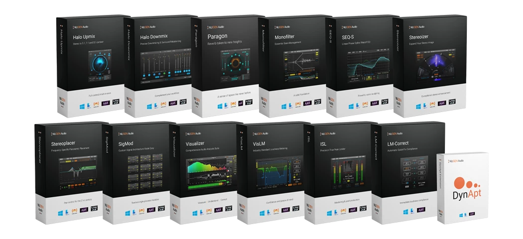 NUGEN Post es una colección imperdible de doce plugins para producción de audio de alta calidad en transmisiones, películas y juegos. Incluye una solución completa de nivelación de volumen que incluye limitado True Peak, herramientas líderes de mezcla y desmezcla, una suite completa de análisis de audio, EQ de auto-correspondencia transparente, 3 plugins de control estéreo y una reverberación por convolución de última generación. NUGEN Post ofrece las mismas herramientas esenciales de postproducción utilizadas por los principales estudios en todo el mundo.