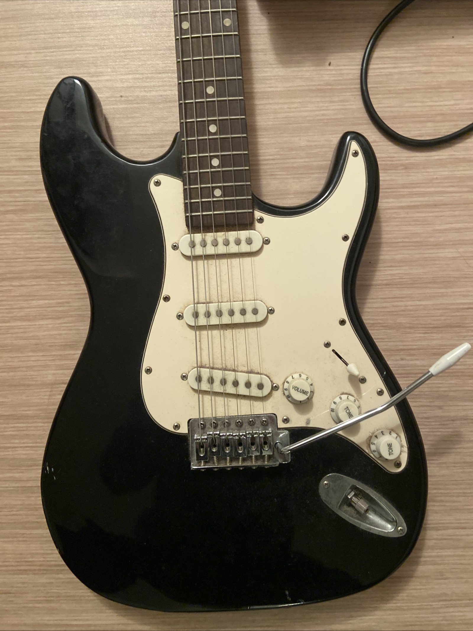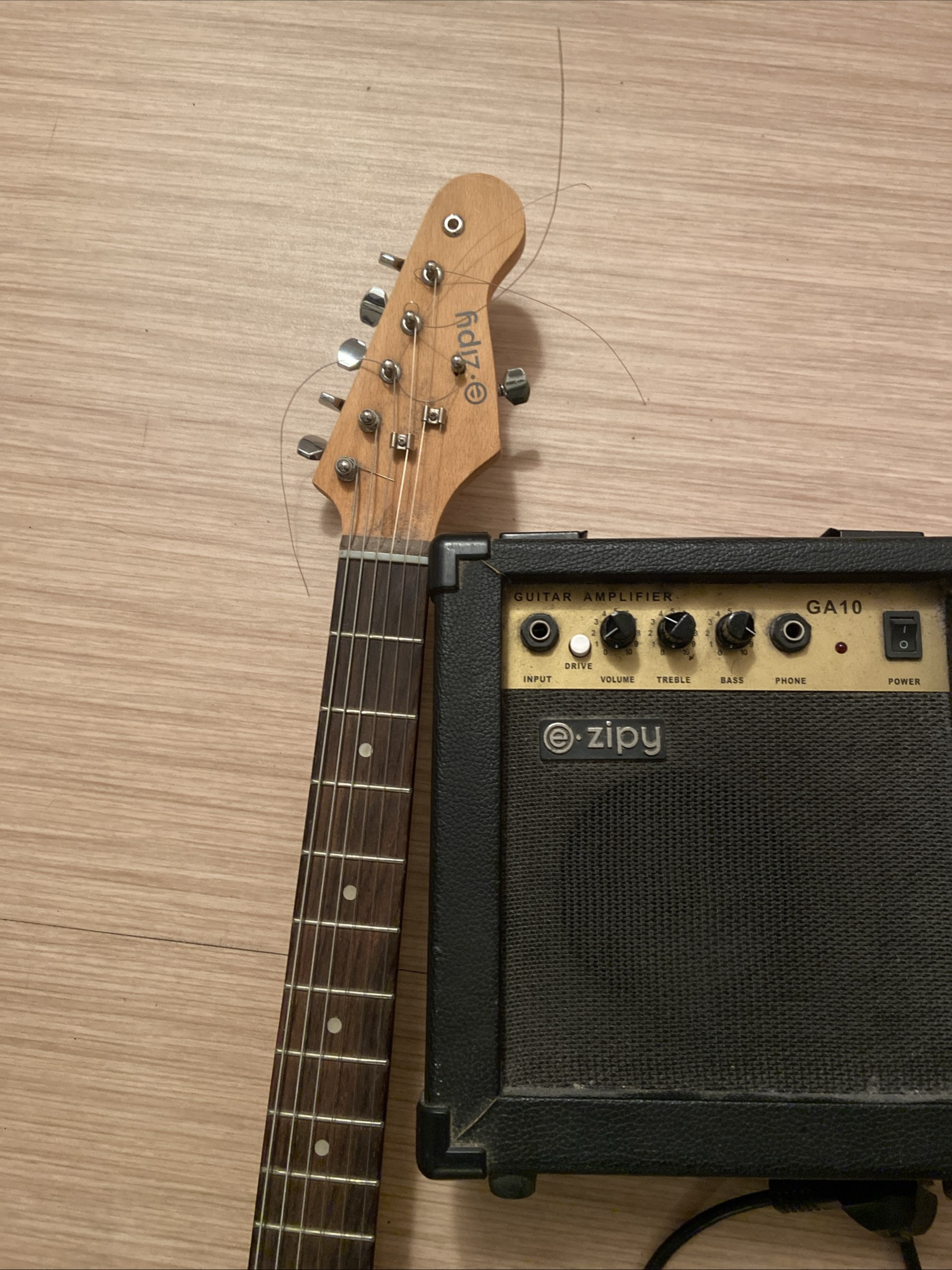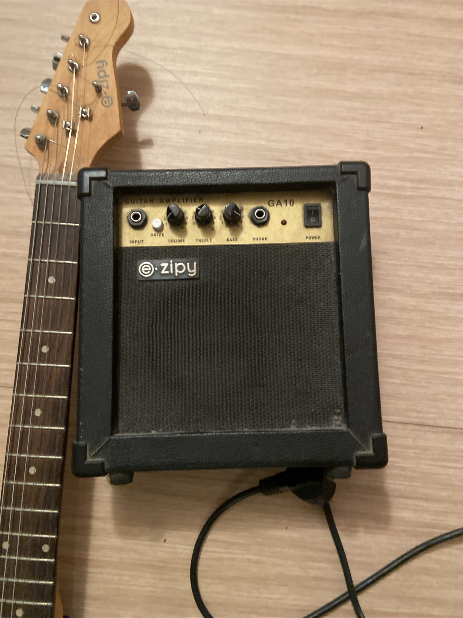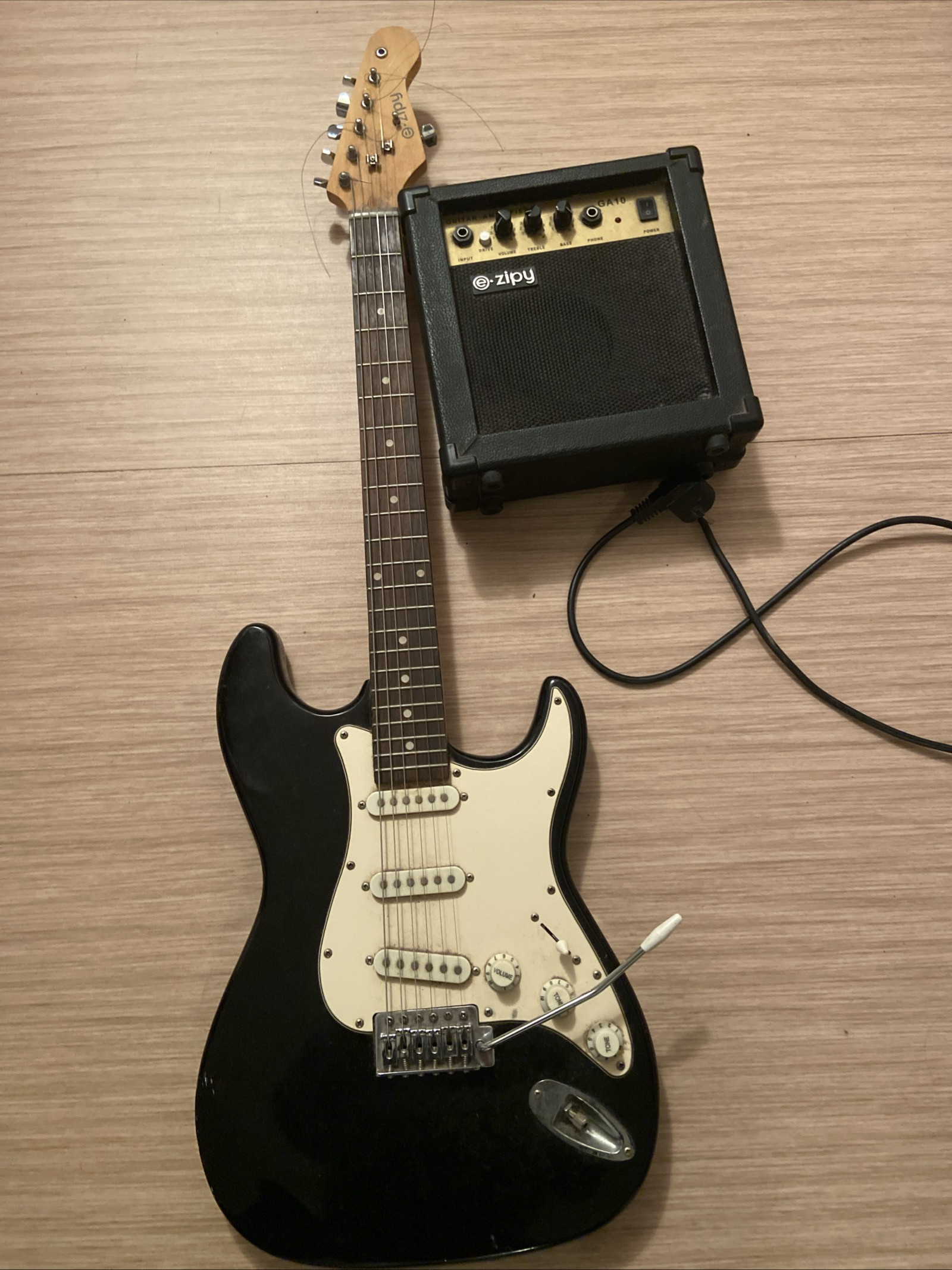 Hola, Vendo una guitarra eléctrica tipo Stratocaster en color negro de la marca e.zipy, junto con su amplificador de la misma marca. En excelente estado, cuerdas nuevas. La guitarra funciona perfectamente y cuenta con vibrato. Ideal para principiantes en la guitarra (rock, blues, etc.). Se vende con: - Amplificador e.zipy - Barra de vibrato. Perfecto para empezar sin tener que comprar equipo adicional. Precio: 115 € (negociable razonablemente).