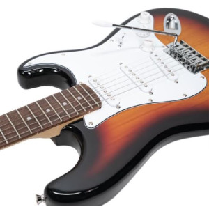 La guitarra incluye funda de transporte, dos cables jack y un pedal de efectos loop.