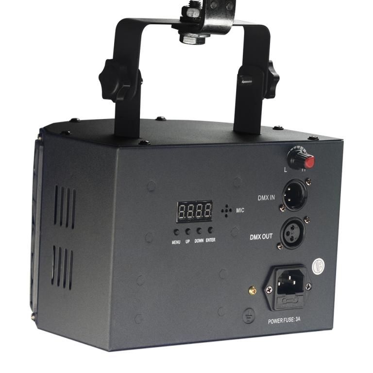 - LED: 6 x 2 watts (1 x rojo, 1 x verde, 1 x azul, 1 x ámbar, 1 x blanco, 1 x violeta)