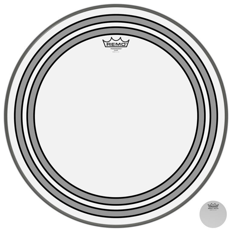 Parche Powersonic transparente de 20" para bombo, con anillos internos.