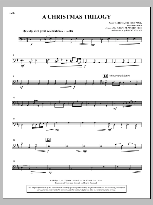 A Christmas Trilogy (from Carols For Choir And Congregation) - Cello