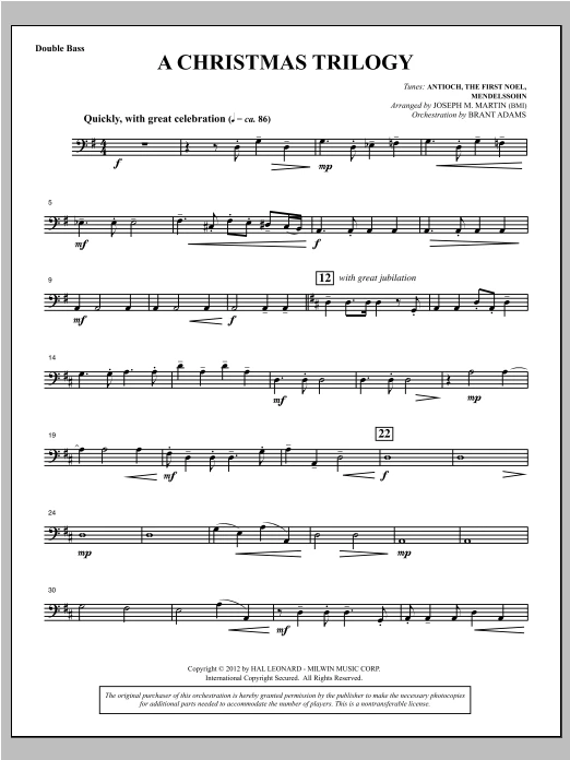 A Christmas Trilogy (from Carols For Choir And Congregation) - Double Bass