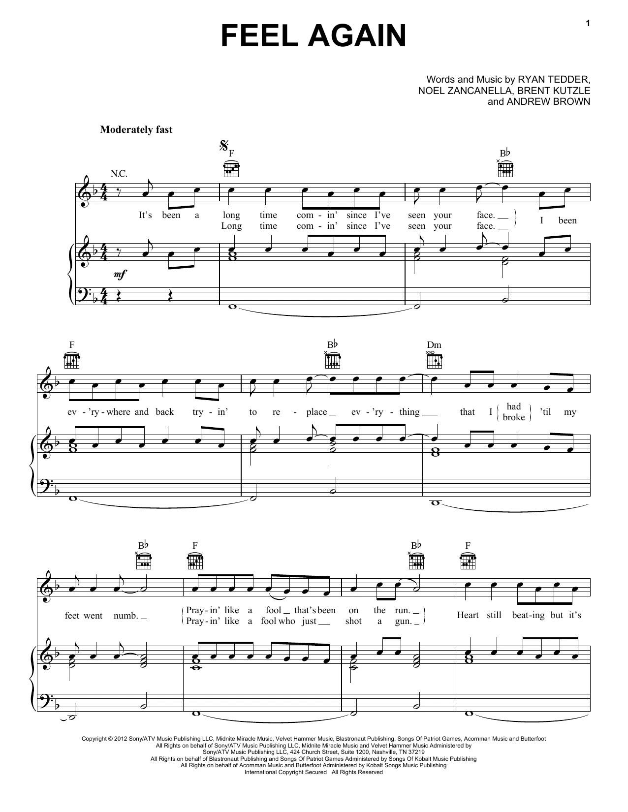 Compositores: Ryan Tedder, Andrew Brown, Brent Kutzle, Noel Zancanella