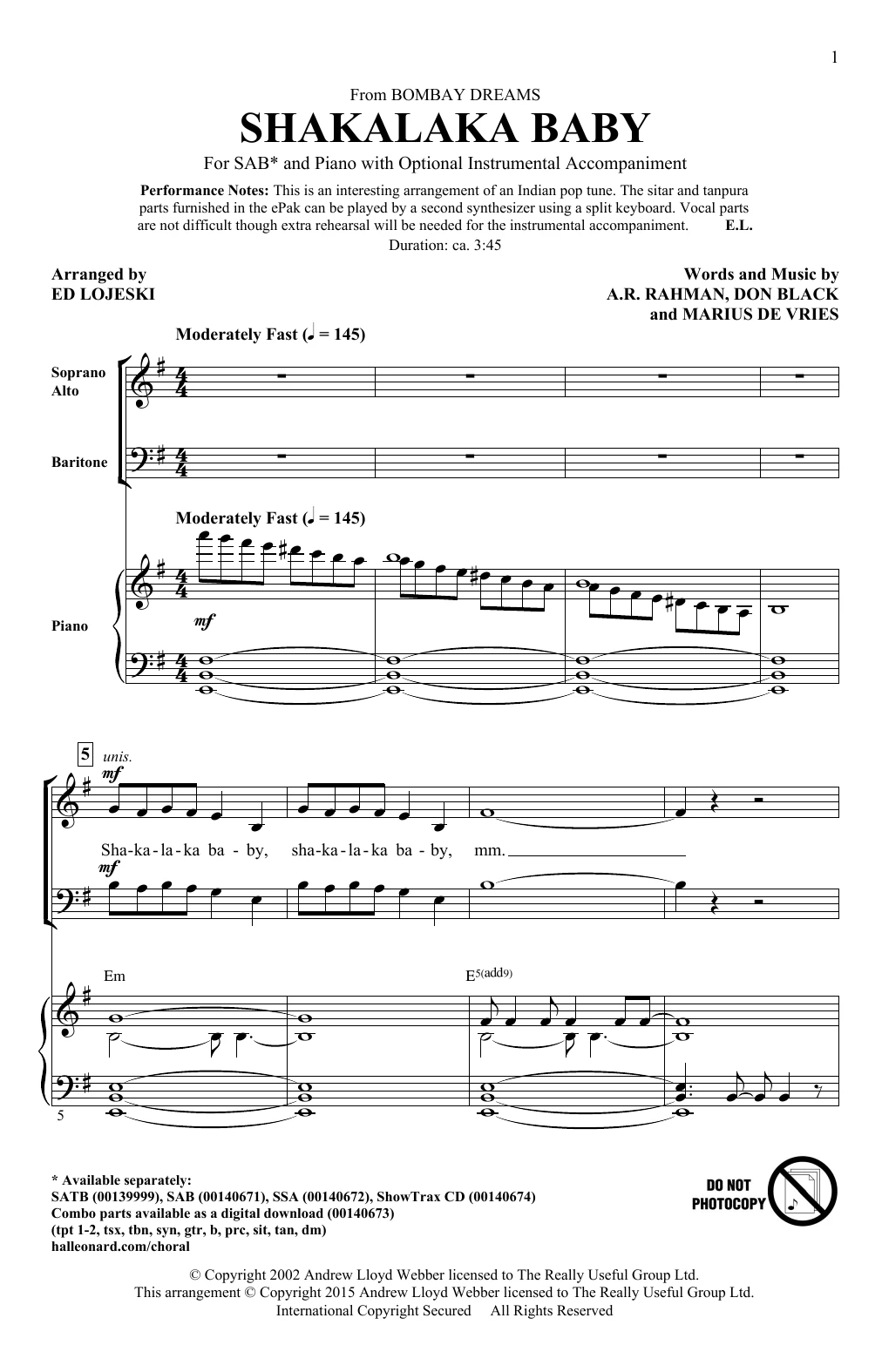 Compositores: Don Black, A.R. Rahman, Marius De Vries