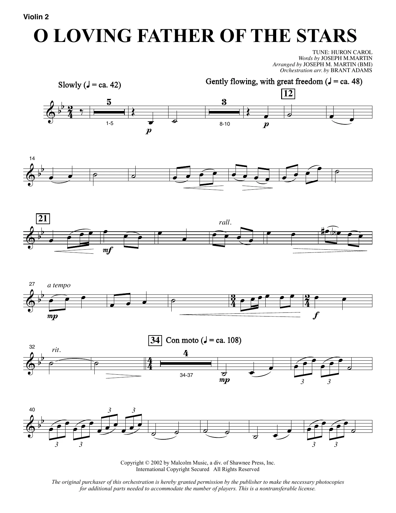 O Loving Father Of The Stars (from Morning Star) - Violin 2