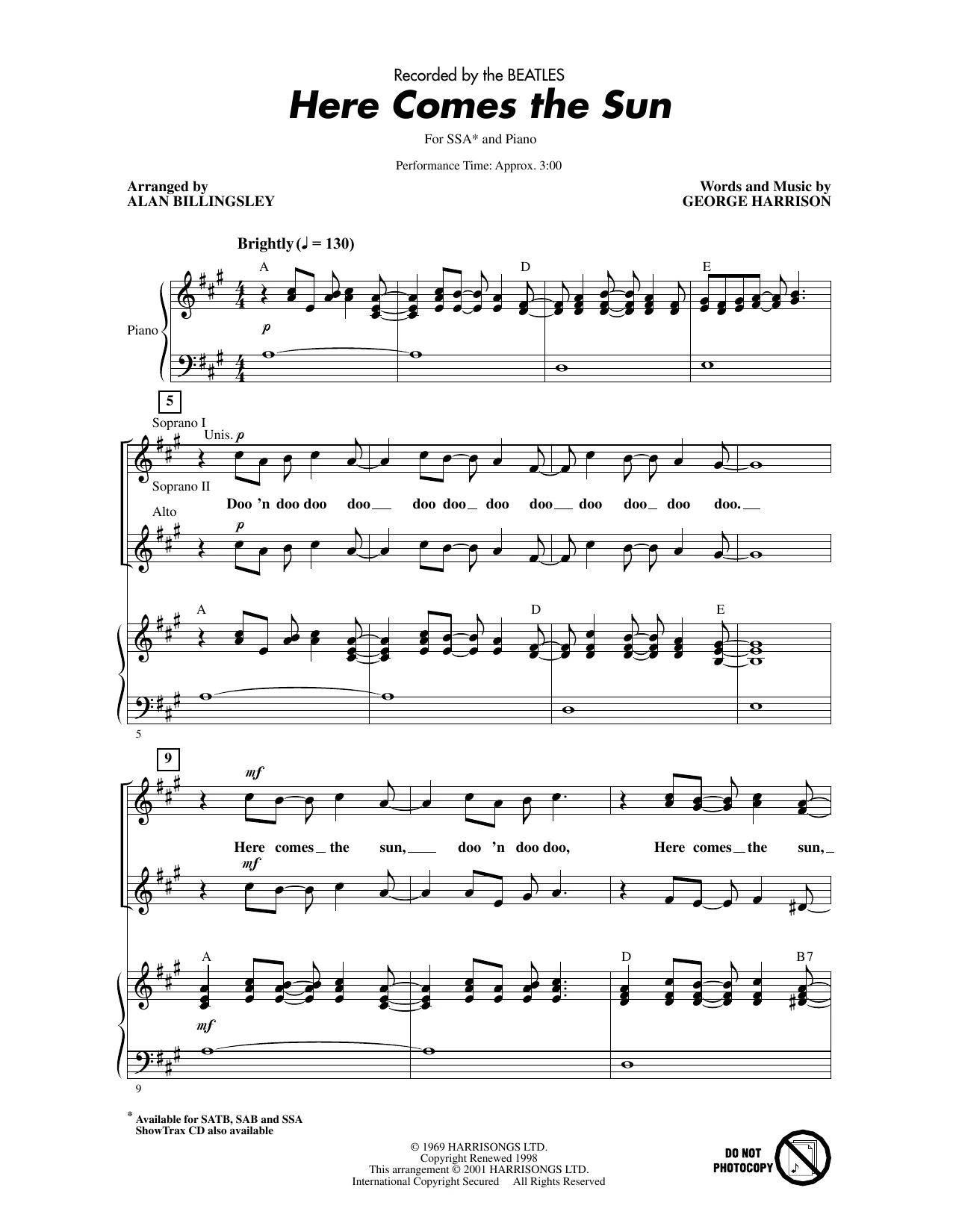 Here Comes The Sun (arr. Alan Billingsley)