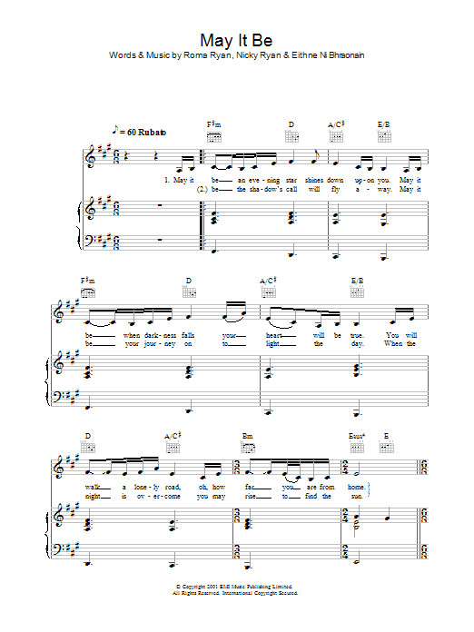 May It Be (from Lord Of The Rings: The Fellowship Of The Ring)