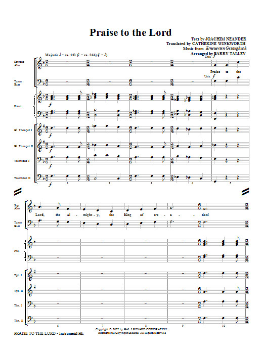 Praise To The Lord - Full Score